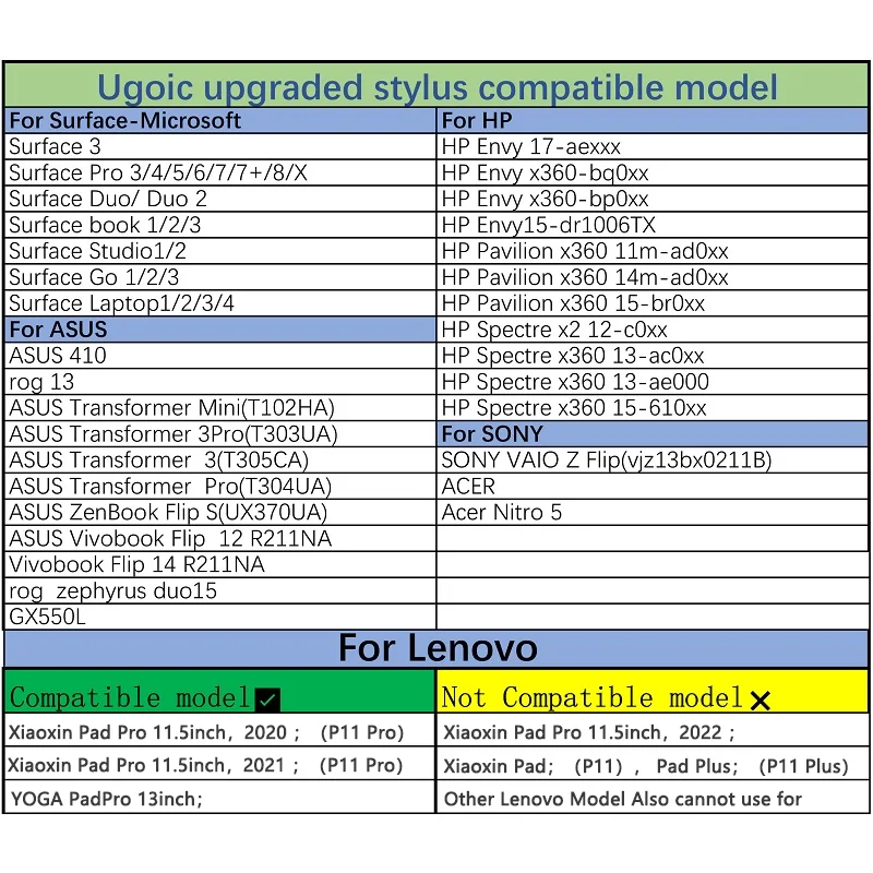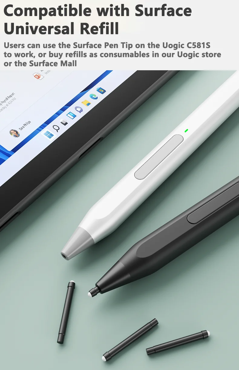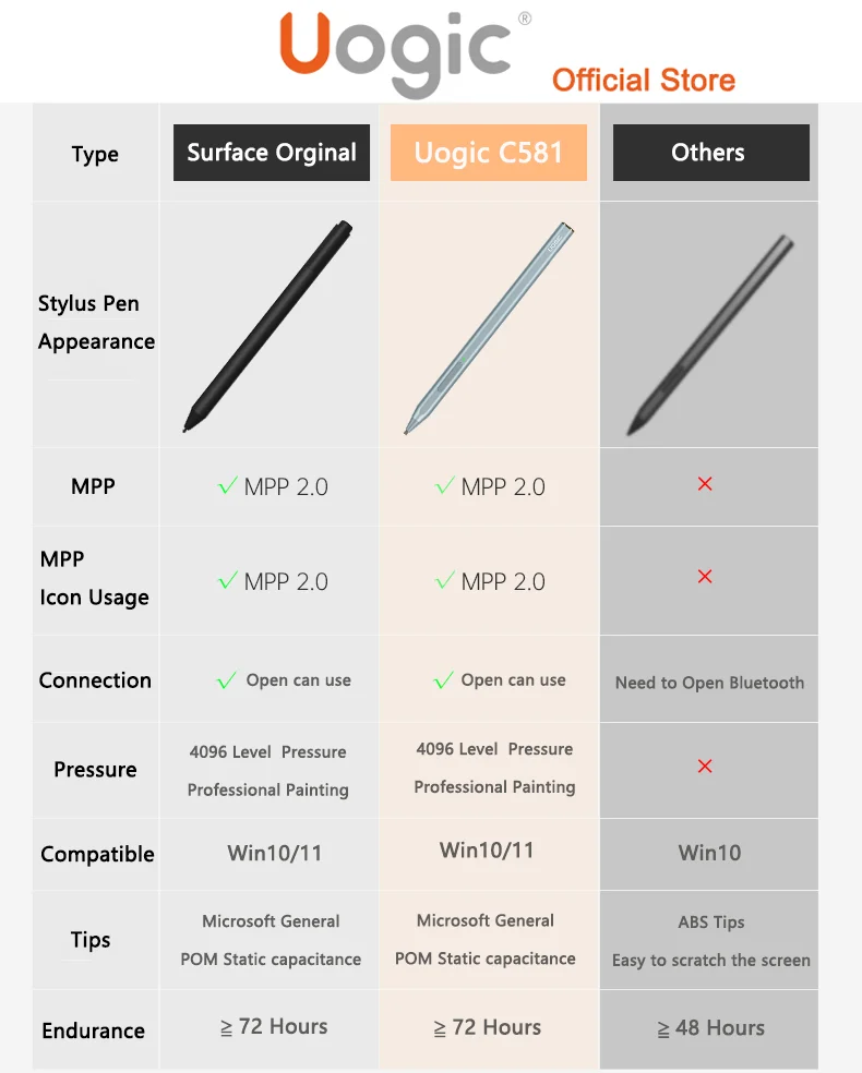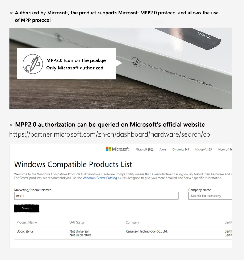 UOGIC TECH уполномочен Microsoft производить стилус карандаши. Все представления прошли сертификацию Microsoft, которая может показать лучшее на поверхностных компьютерах.