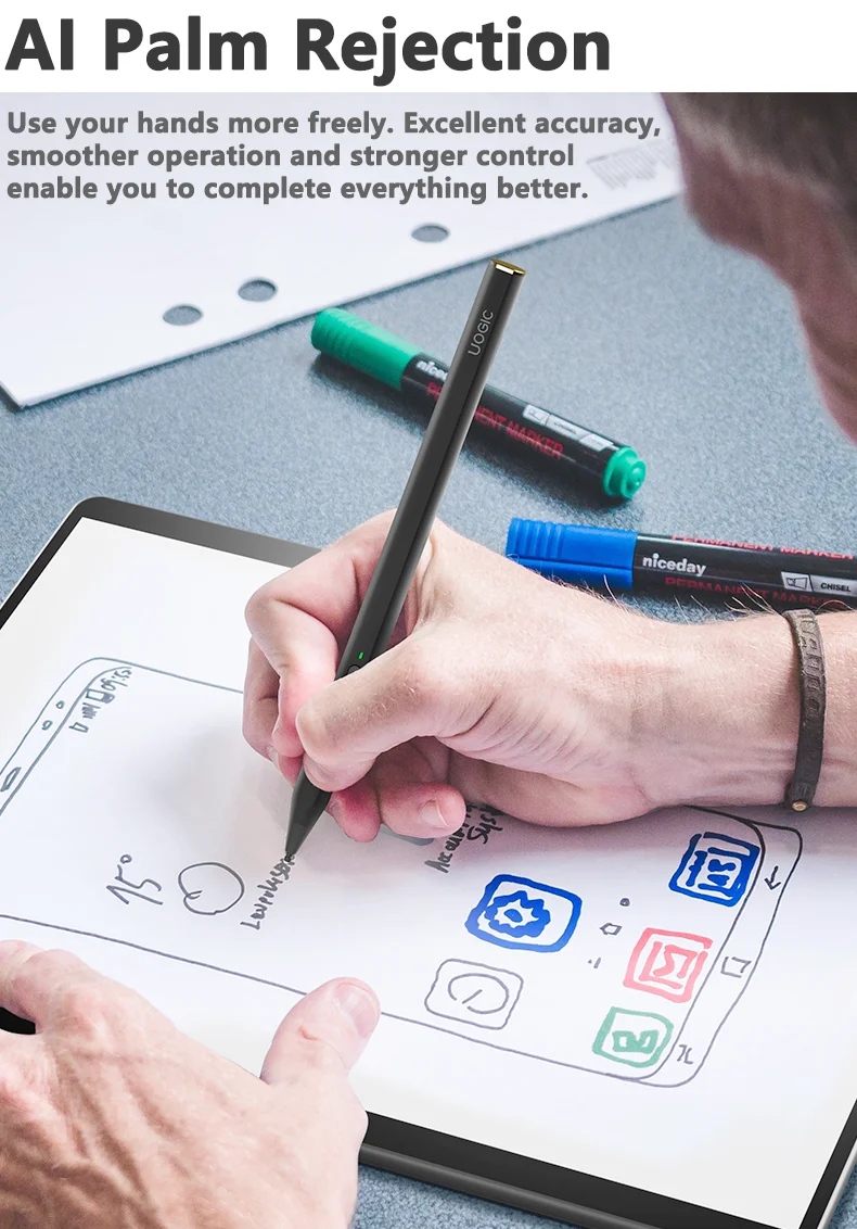 ✅【Наклон и отклонение ладони: Uogic Ink 581 стилус чувствителен к давлению и наклону, поэтому вы можете легко менять Вес линии, создавать тонкие затенения и производить широкий спектр художественных эффектов. И вы, безусловно, можете оставить свою руку естественным образом на экране.