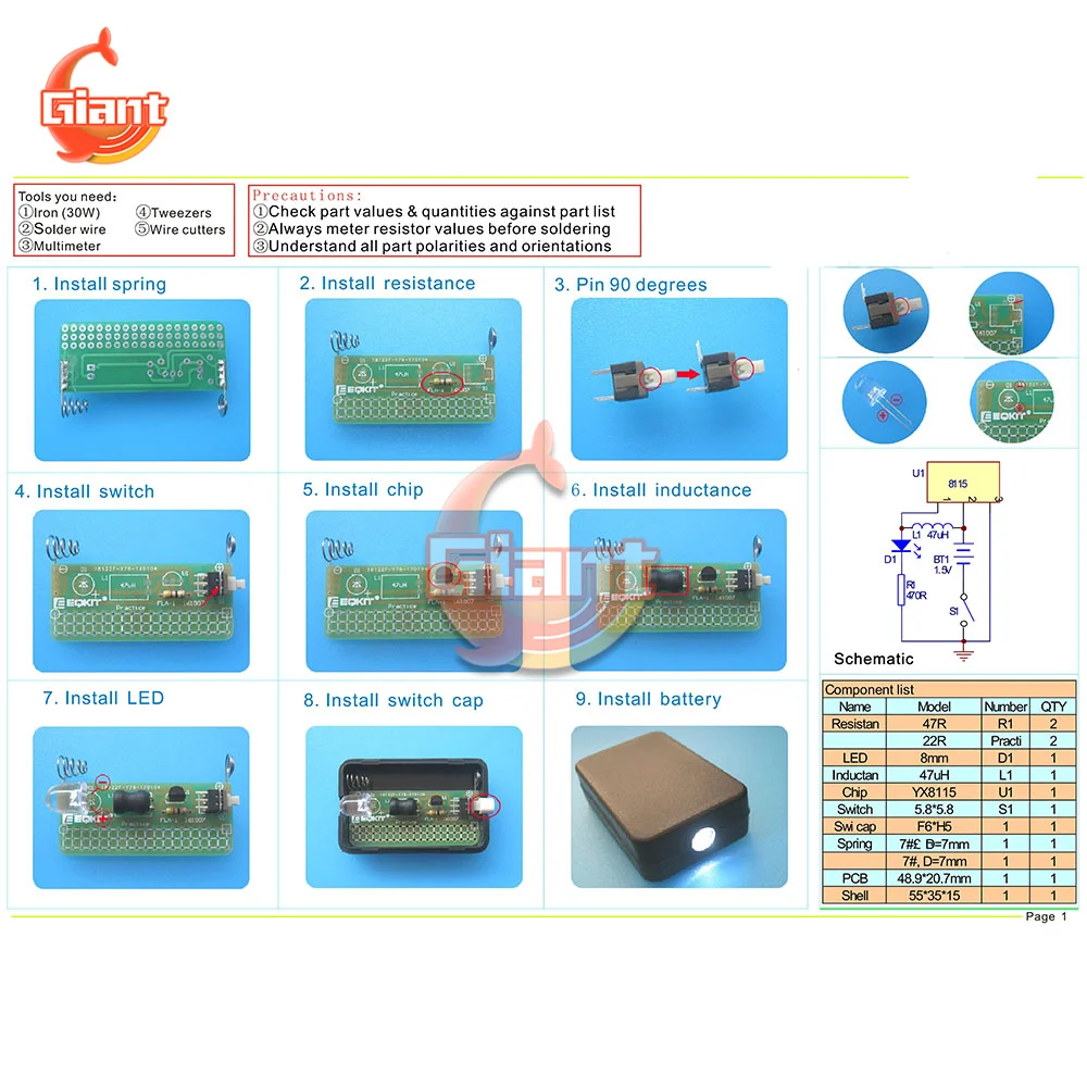 FLA-1 1,5 V простой фонарик DIY Kit Интегральная плата паяльная практика набор сварочных тренировок