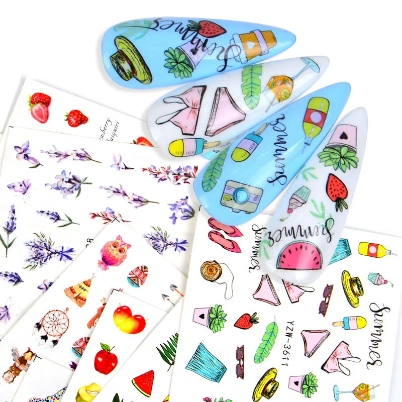 Отзывы о Наклейка для ногтей С КАКТУСОМ авокадо летним цветком фламинго клубникой