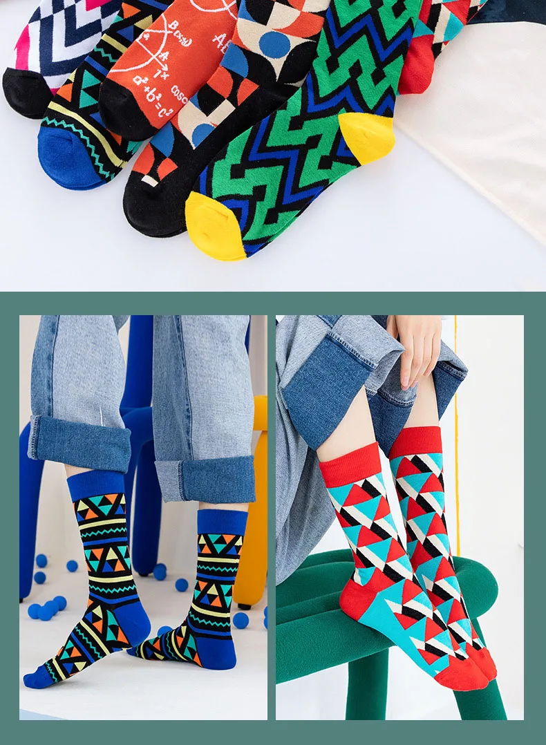 Отзывы о Носки мужские цветные полосатые качественные с геометрическим узором в клетку