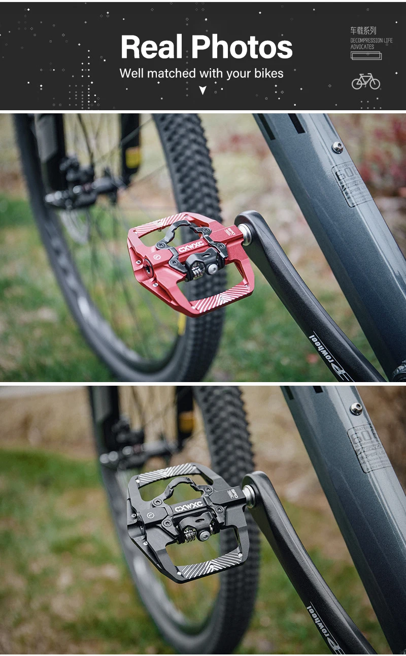 SPD привязка на одной стороне педалей обеспечивает безопасность и эффективность педалей бесклипсовой педали. Стандартная педаль на платформе с другой стороны позволяет вам кататься на велосипеде в нескользящей обуви