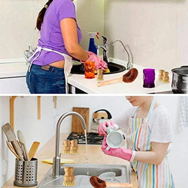 4 шт. Набор бамбуковых щеток для мытья посуды, 3 круглые щетки для посуды и 1 длинная щетка для посуды