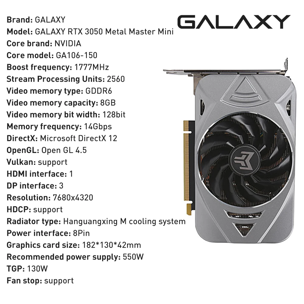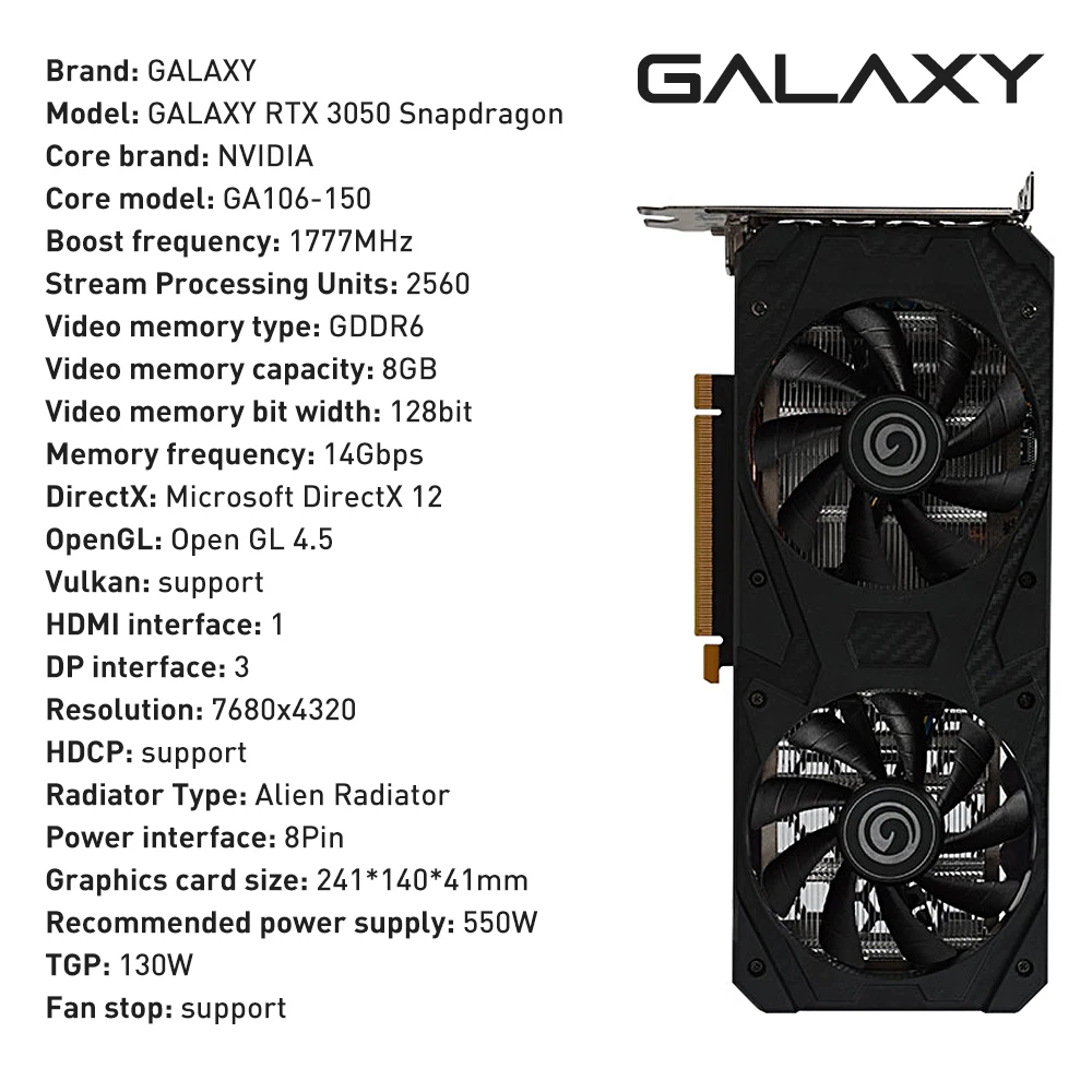 Отзывы о Новая графическая карта GALAXY GDDR6 ATX 3050 8 Гб игровая NVIDIA 8Pin 128 бит 8nm RGB rtx видеокарта