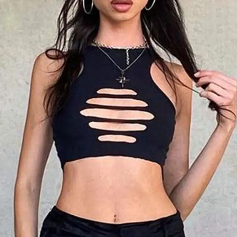 Отзывы о Женский Открытый Топ без рукавов Готическая майка в стиле 90-х укороченный топ Y2K
