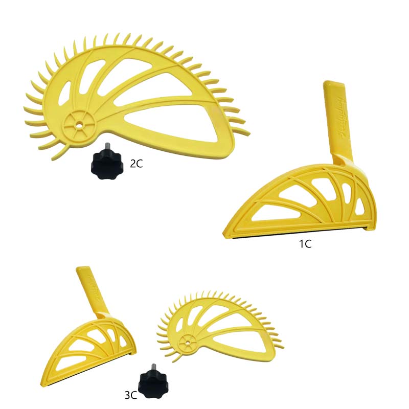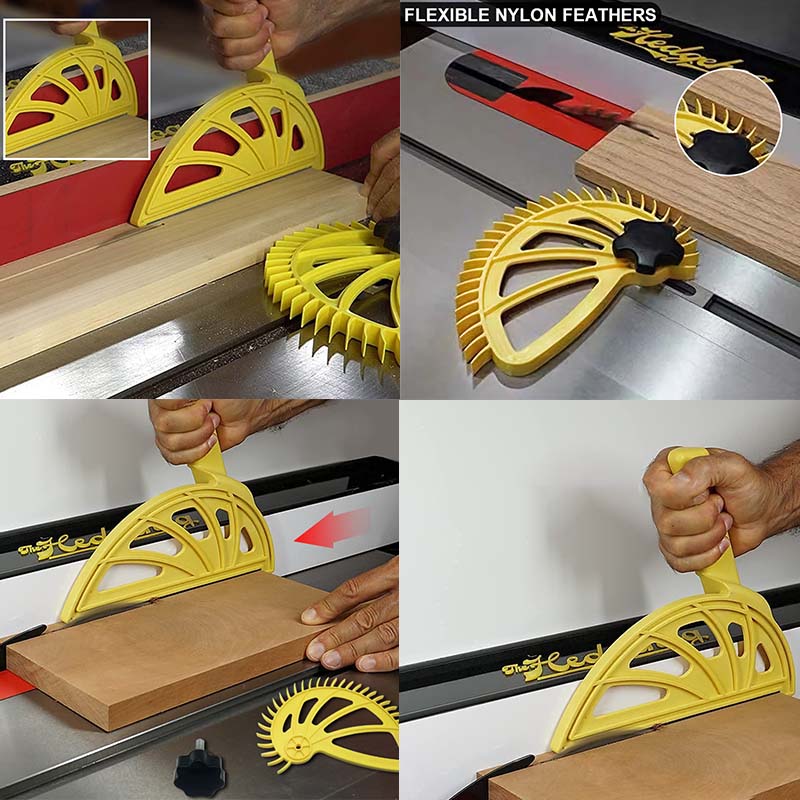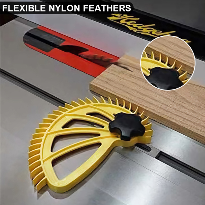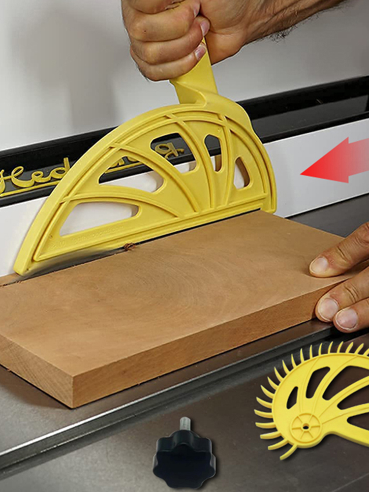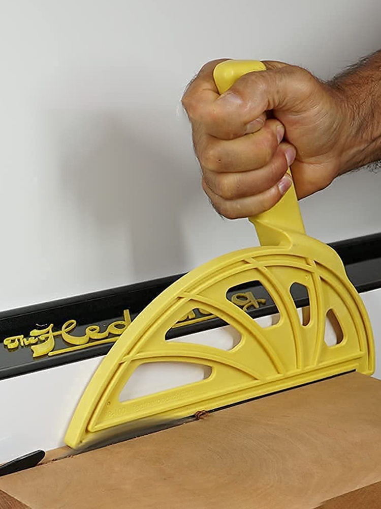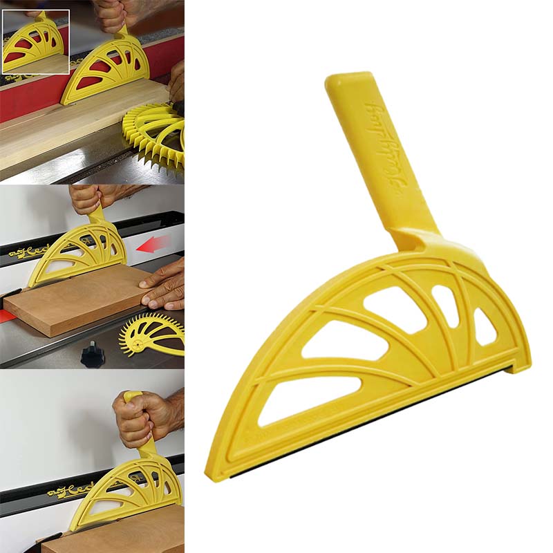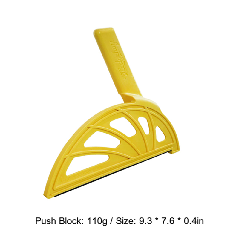 Изготовлен из армированного стекловолокном нейлона для жесткости и ударопрочности. Офсетные ручки, чтобы держать руки вдали от вращающихся лезвий или фрезов. 3/8 дюйма в ширину для этих узких разрезов. Неопреновые полоски внизу для лучшего захвата и контроля. 1/4 "каблук надежно закрепите доску.