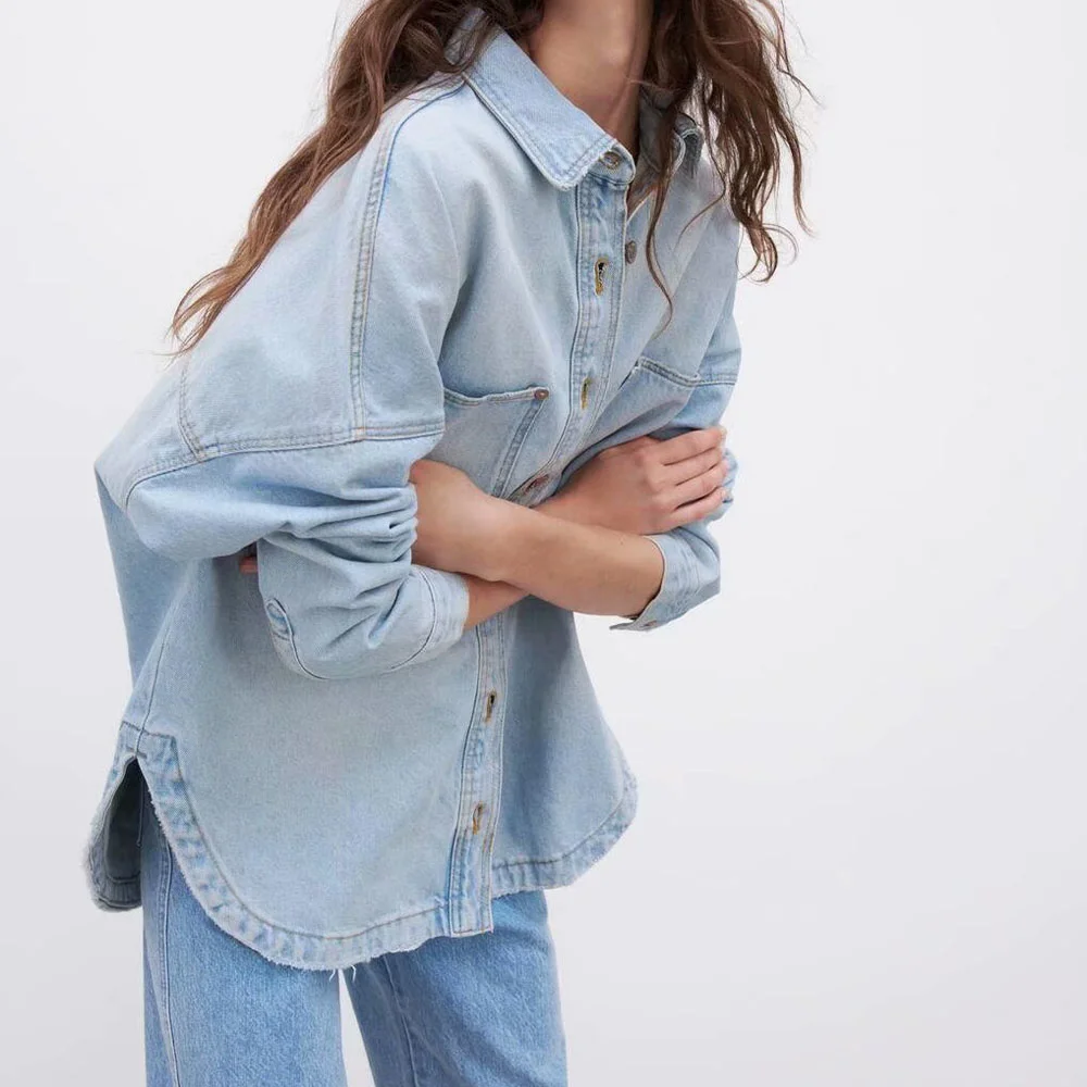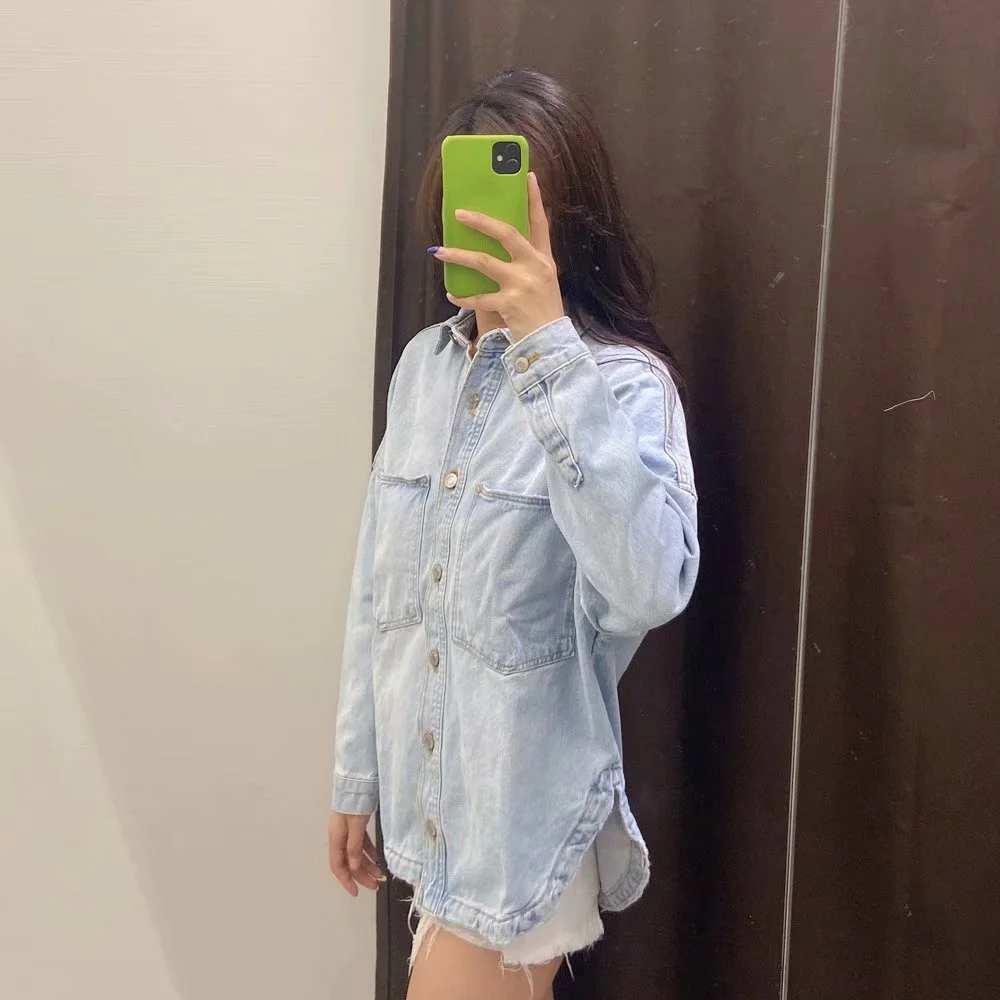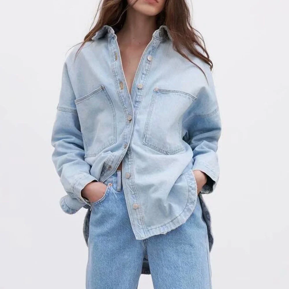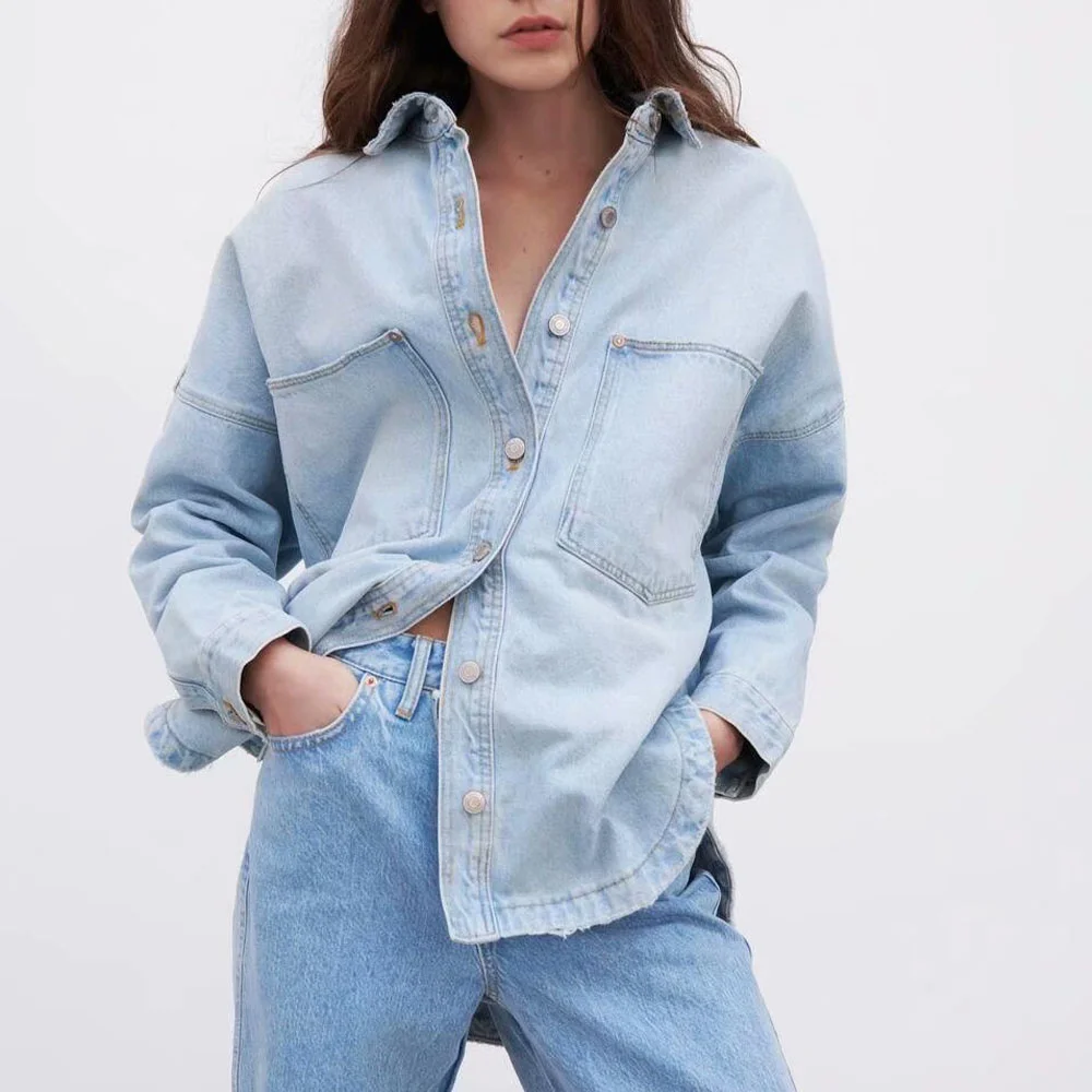 Отзывы о Женская джинсовая рубашка с карманами Повседневная Свободная в британском