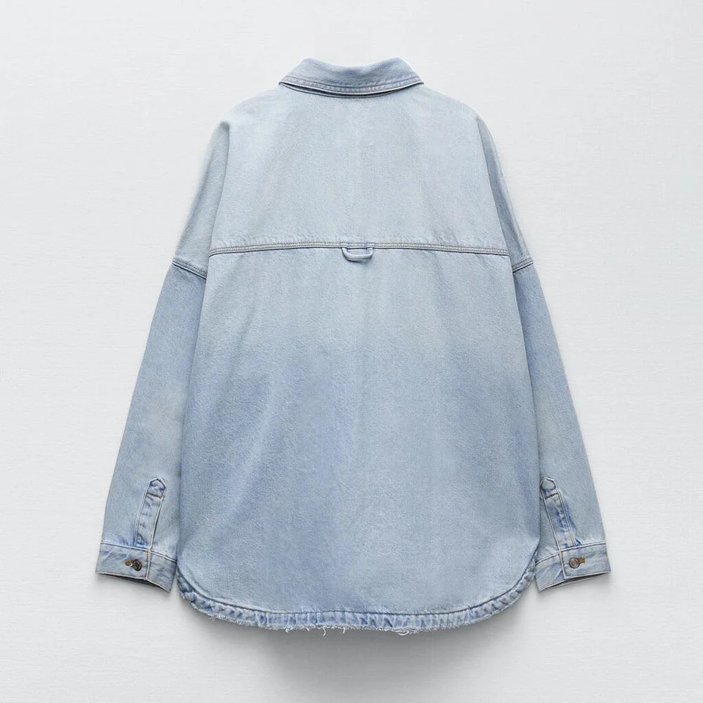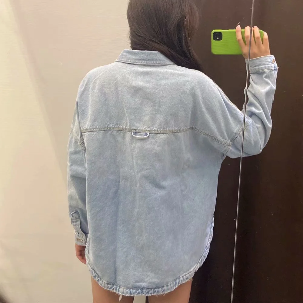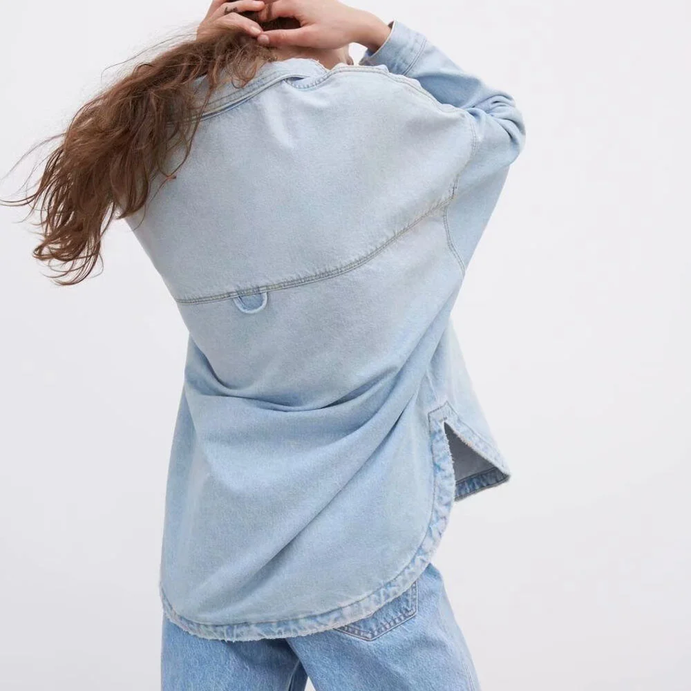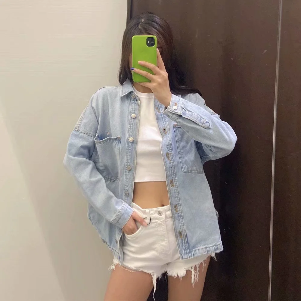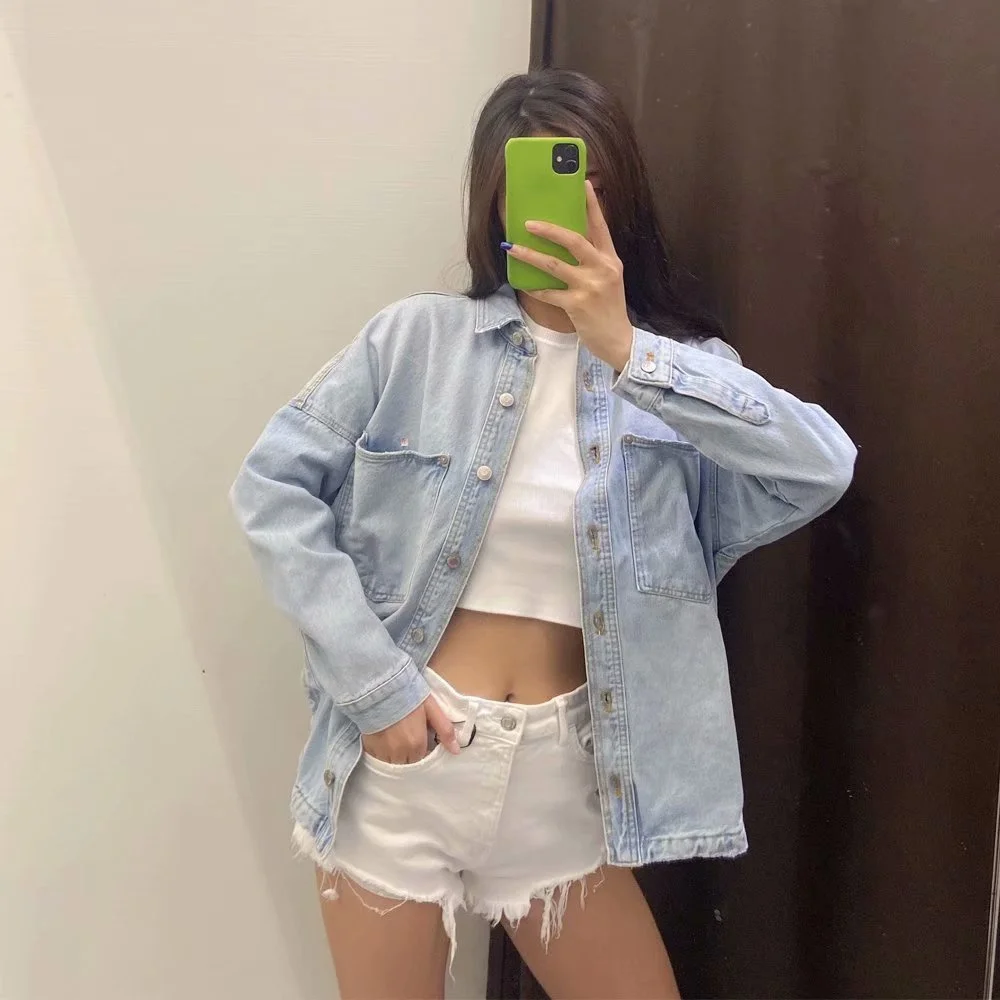 Отзывы о Женская джинсовая рубашка с карманами Повседневная Свободная в британском