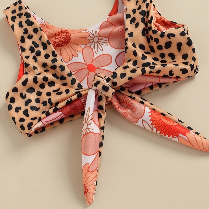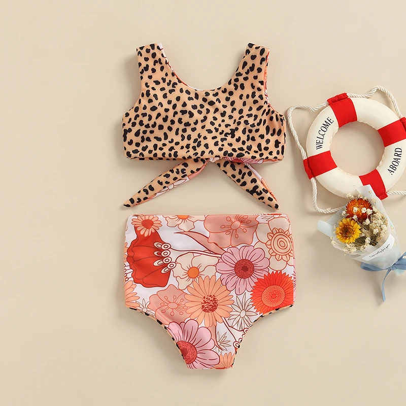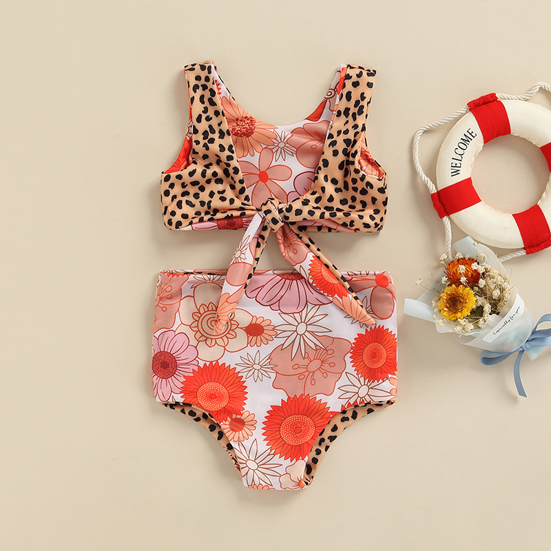 Летние купальные комплекты из 2 предметов для девочек без рукавов с узлом на спине