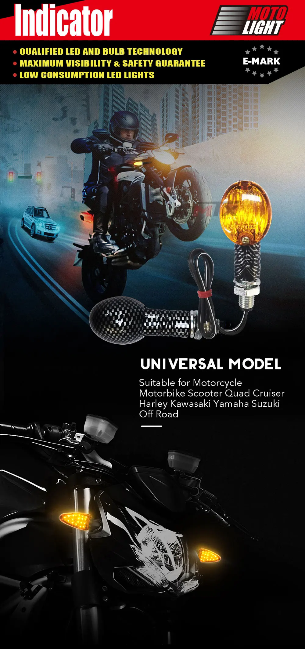 Универсальный подходит для большинства мотоциклов, для Harley,Kawasaki,Yamaha,Suzuki и т. д.