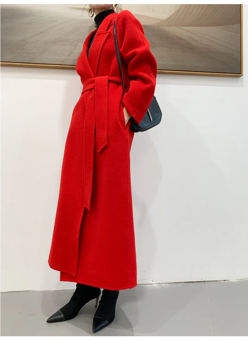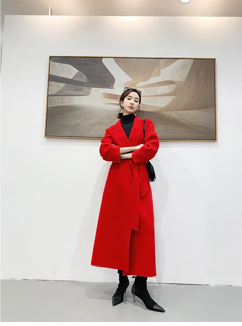 Большое красное двухстороннее шерстяное пальто женское средней и длинной 2022 Новое весеннее и осеннее и зимнее высококачественное свадебное шерстяное пальто невесты
