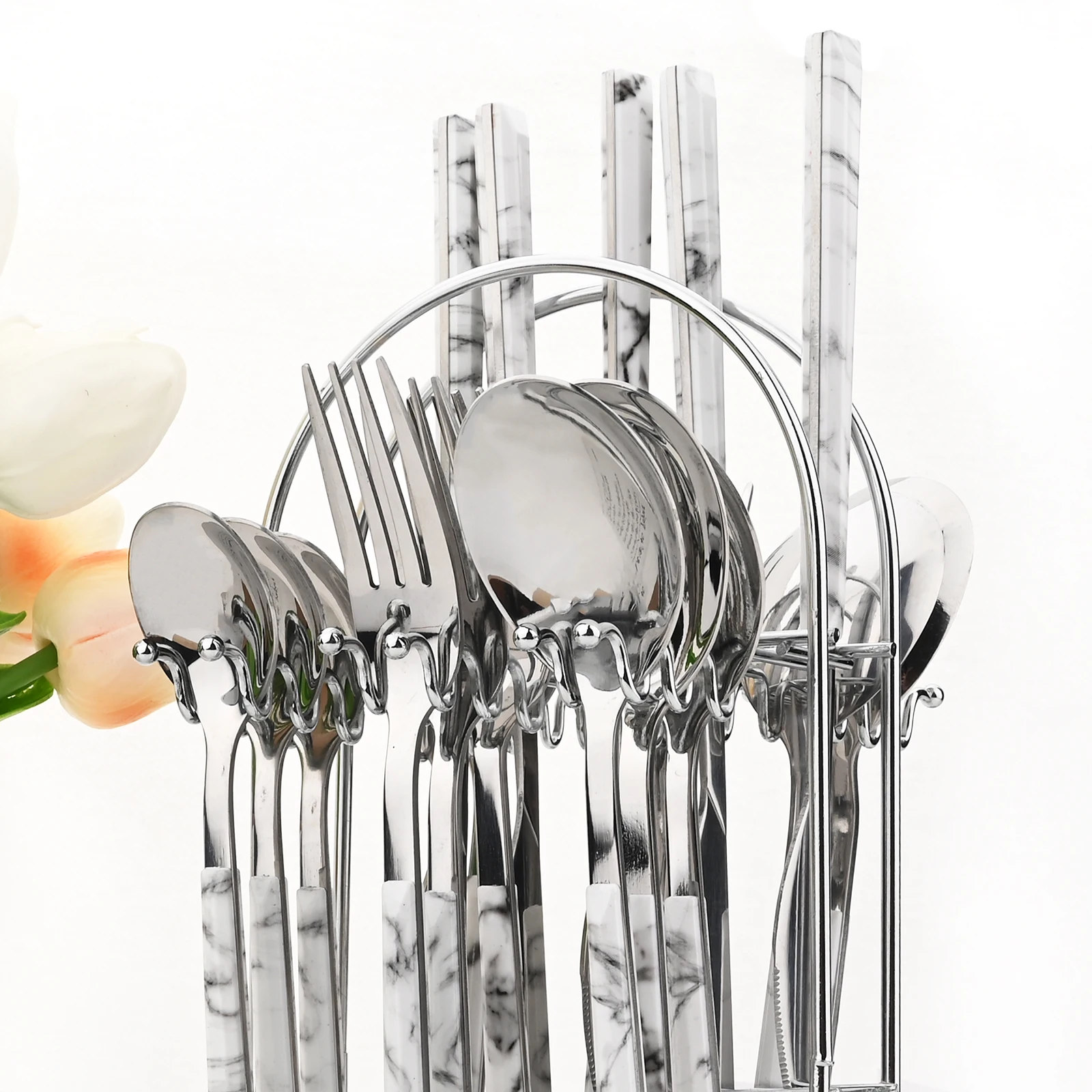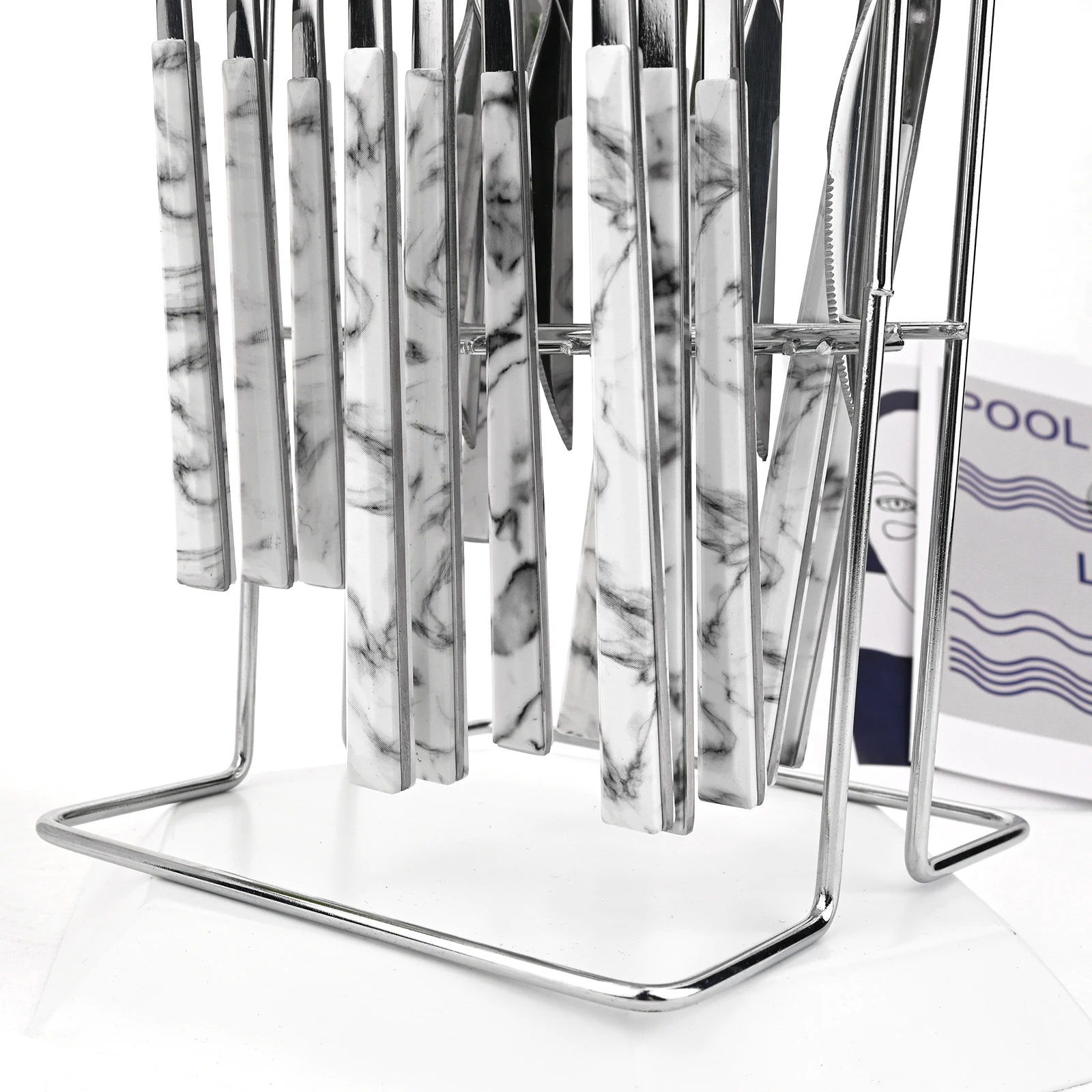 Отзывы о 16/24Pcs Knives Fork Spoons Cutlery Set Marble Texture Silver Dinnerware Western Stainless Steel Tableware Rack Flatware - купить по
