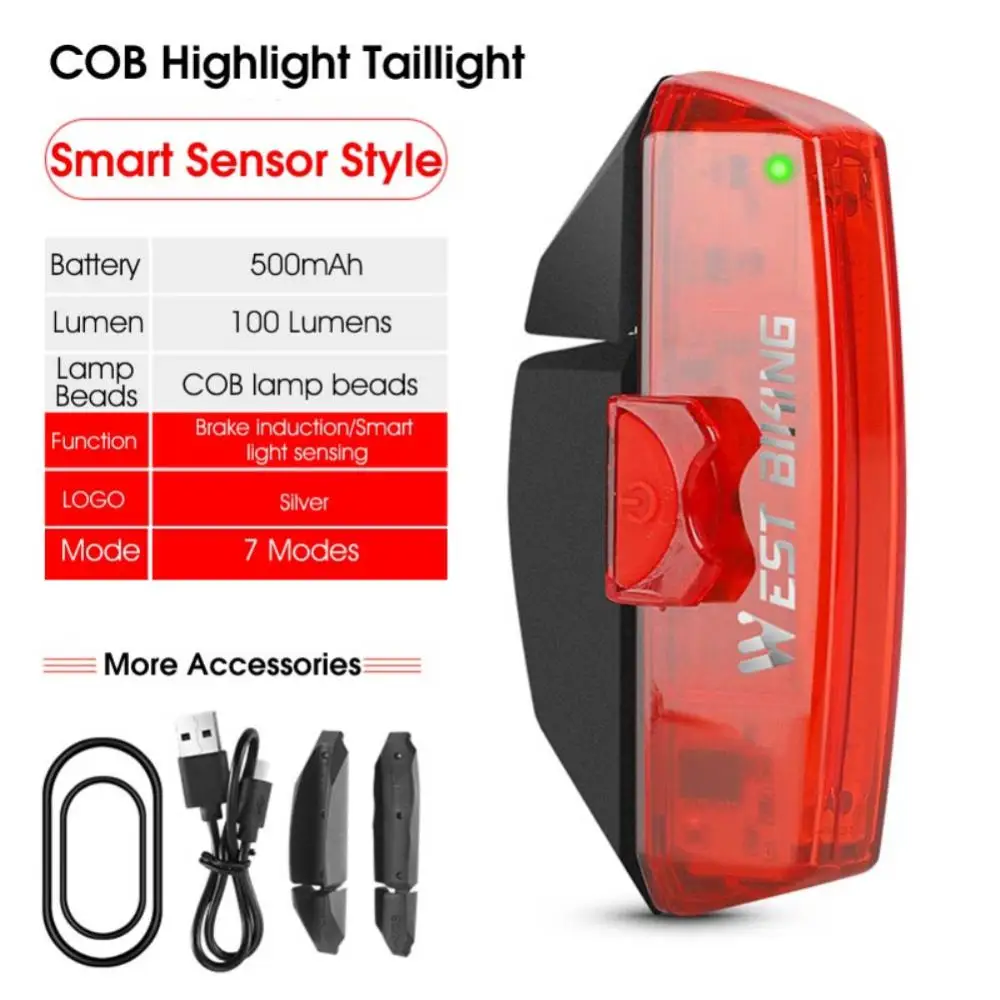 Велосипедный Интеллектуальный чувствительный тормозной задний светильник, перезаряжаемый через USB светодиодный Предупреждение ющий светильник, ночной велосипедный задний светильник, горная велосипедная лампа