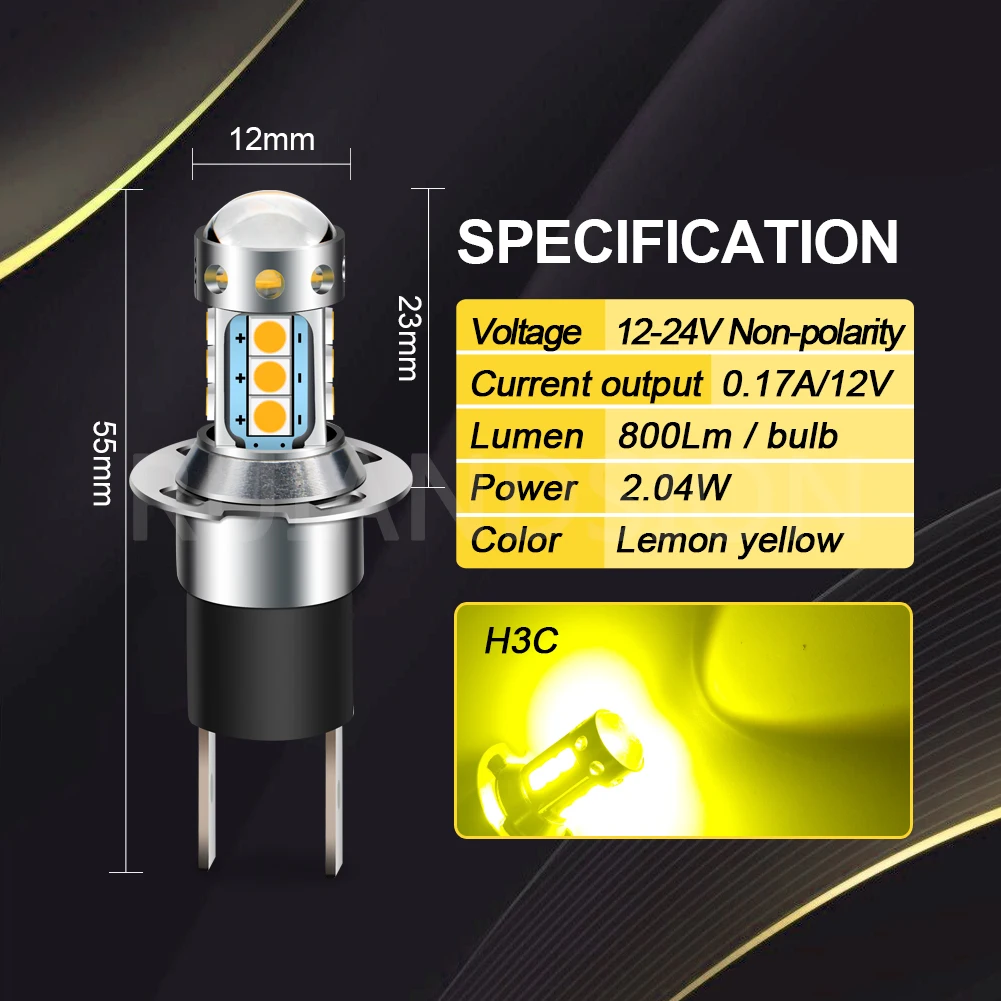 RUIANDSION H3C 283512SMD 2Pcs12V 24V светодиодный Автомобильная противотуманная фара дальнего света лампы белого или желтого цвета, автоматическая головная лампа Противотуманные фары 800Lm