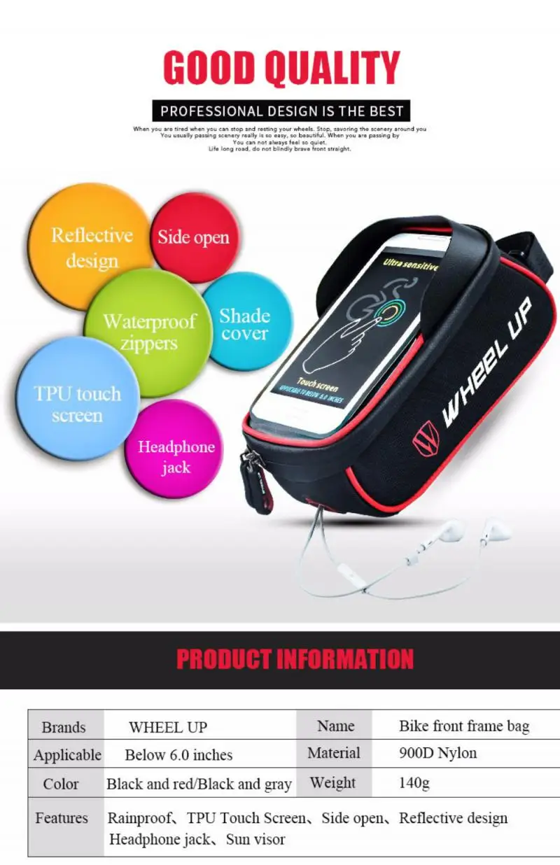 Колеса до Водонепроницаемый велосипедная Сумка велосипедная Передняя держатель сотового телефона Светоотражающие 6 дюймовый сенсорный экран для телефона на велосипед сумка велосипед аксессуары