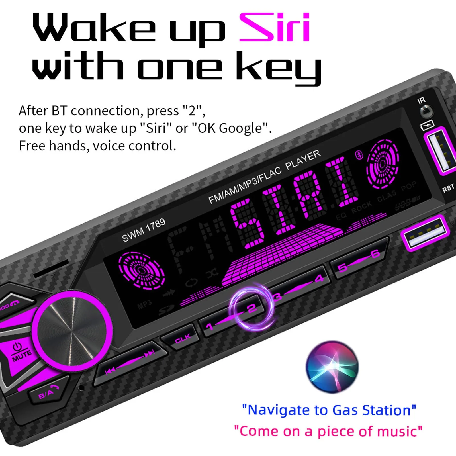 2. Интеллектуальное Голосовое управление-после подключения автомобильного стерео к смартфону, нажмите кнопку «2» и разбудите мобильный телефон голосовых помощников и попросите ассистентов позвонить кому-то и так далее.