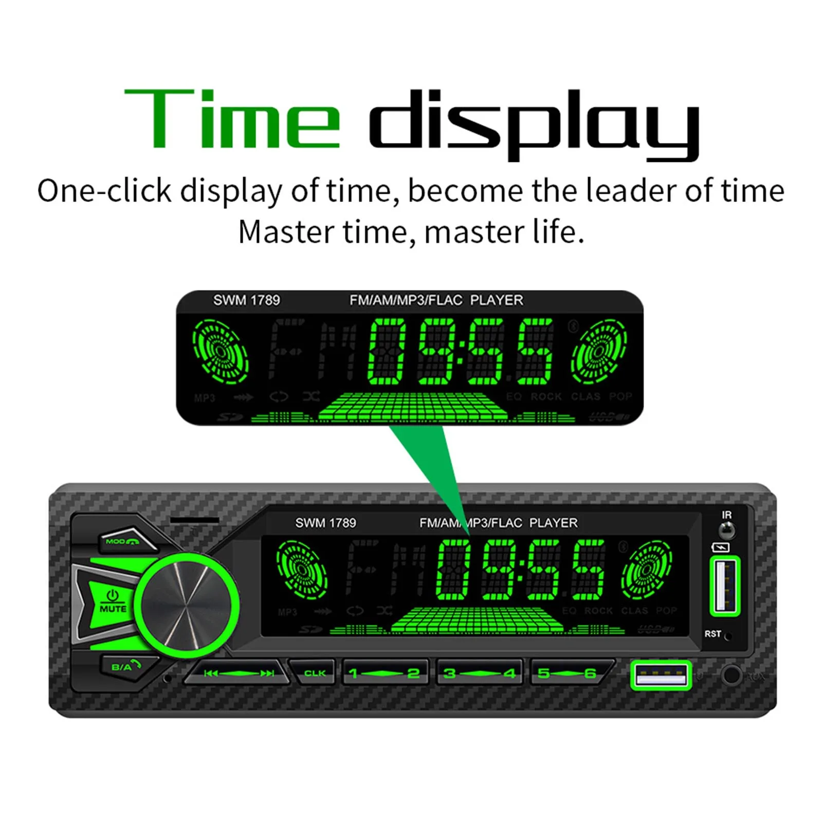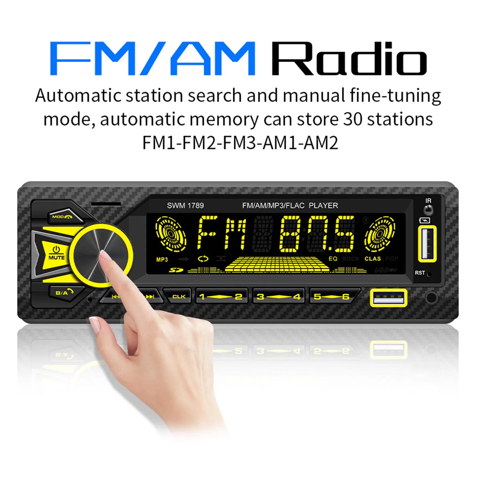 5. Цветное цветное освещение кнопок-этот автомобильный стереоприемник с поддержкой Bluetooth имеет переменное цветовое освещение, чтобы персонализировать его внешний вид и придать вам различный музыкальный опыт.
