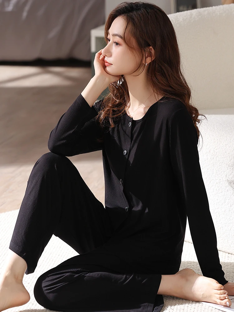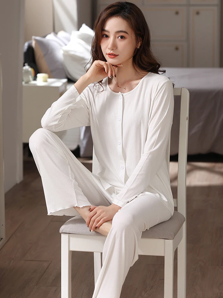 Отзывы о Белая Весенняя Пижама женская одежда для сна из модала однотонная с круглым