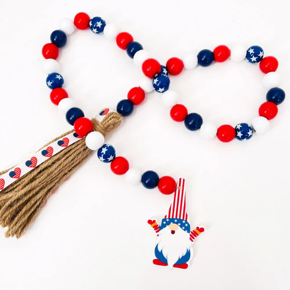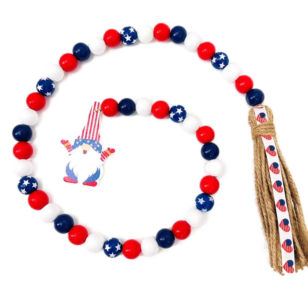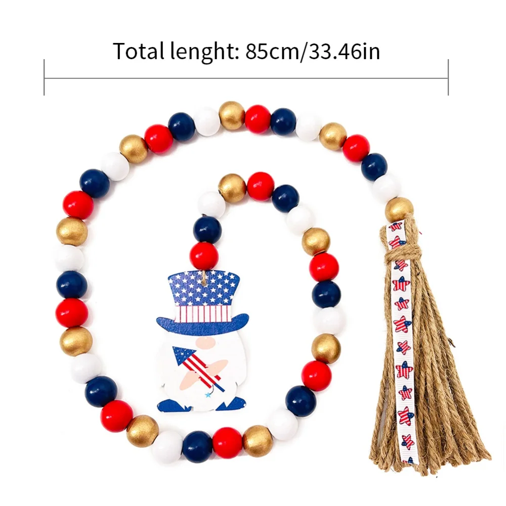 2. Милый дизайн, деревянные бусины с кисточками и кулонами, красочные бусы, полные праздничной атмосферы, является отличным украшением для Дня независимости.
