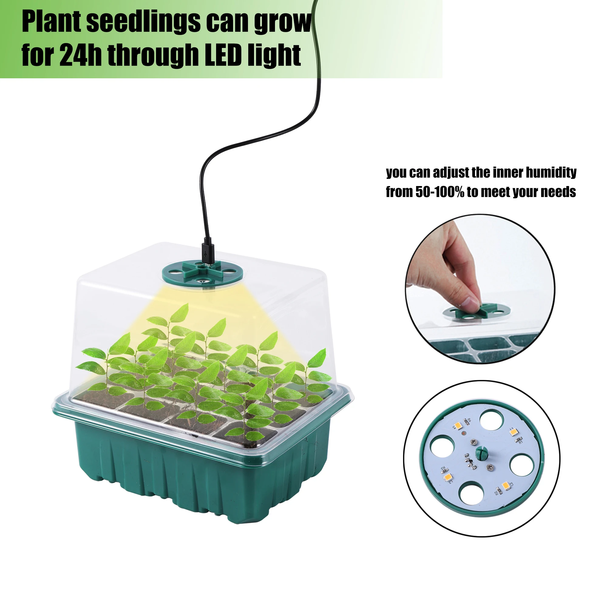 【Регулируемая конструкция влажности】:Регулируемая влажность ineer от 50-100%. Вы можете легко регулировать внутреннюю влажность и температуру, поворачивая регулятор для учета различных этапов роста семян. Вентиляционные отверстия хороши для быстрого роста растений и полностью контролируют процесс прорастания.