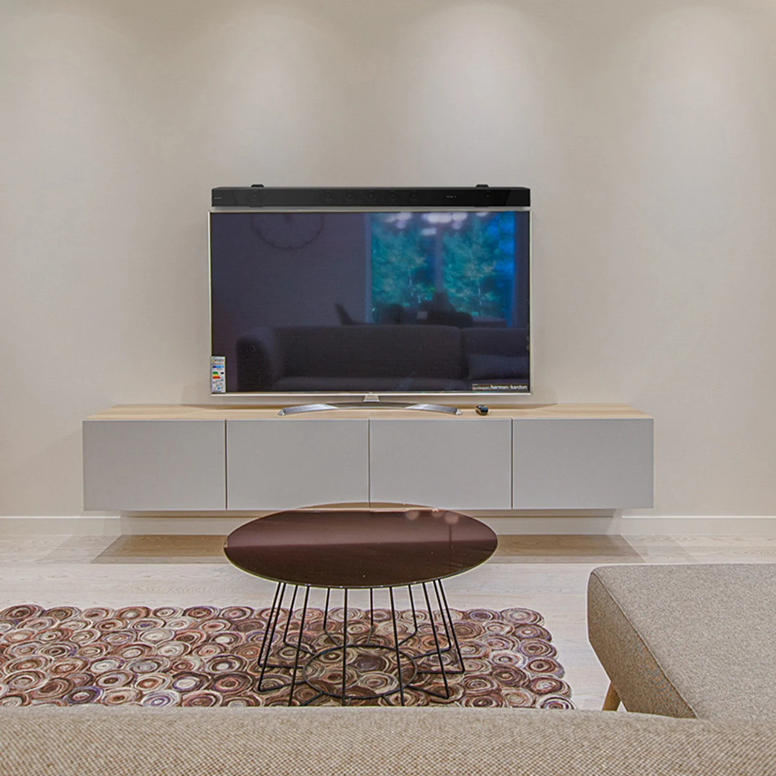 3. Прочный материал: стойка для звукового бара изготовлена из всего металлического материала, который может поддерживать звуковые полосы до 33 фунтов/15 кг. Кроме того, нескользящая Панель EVA защитит ваш Саундбар от царапин.