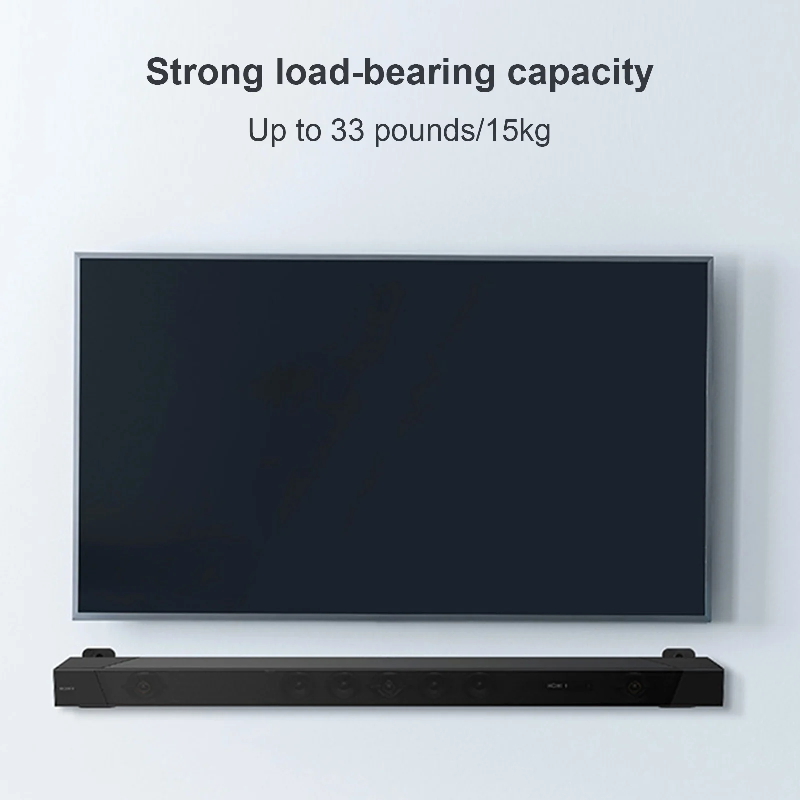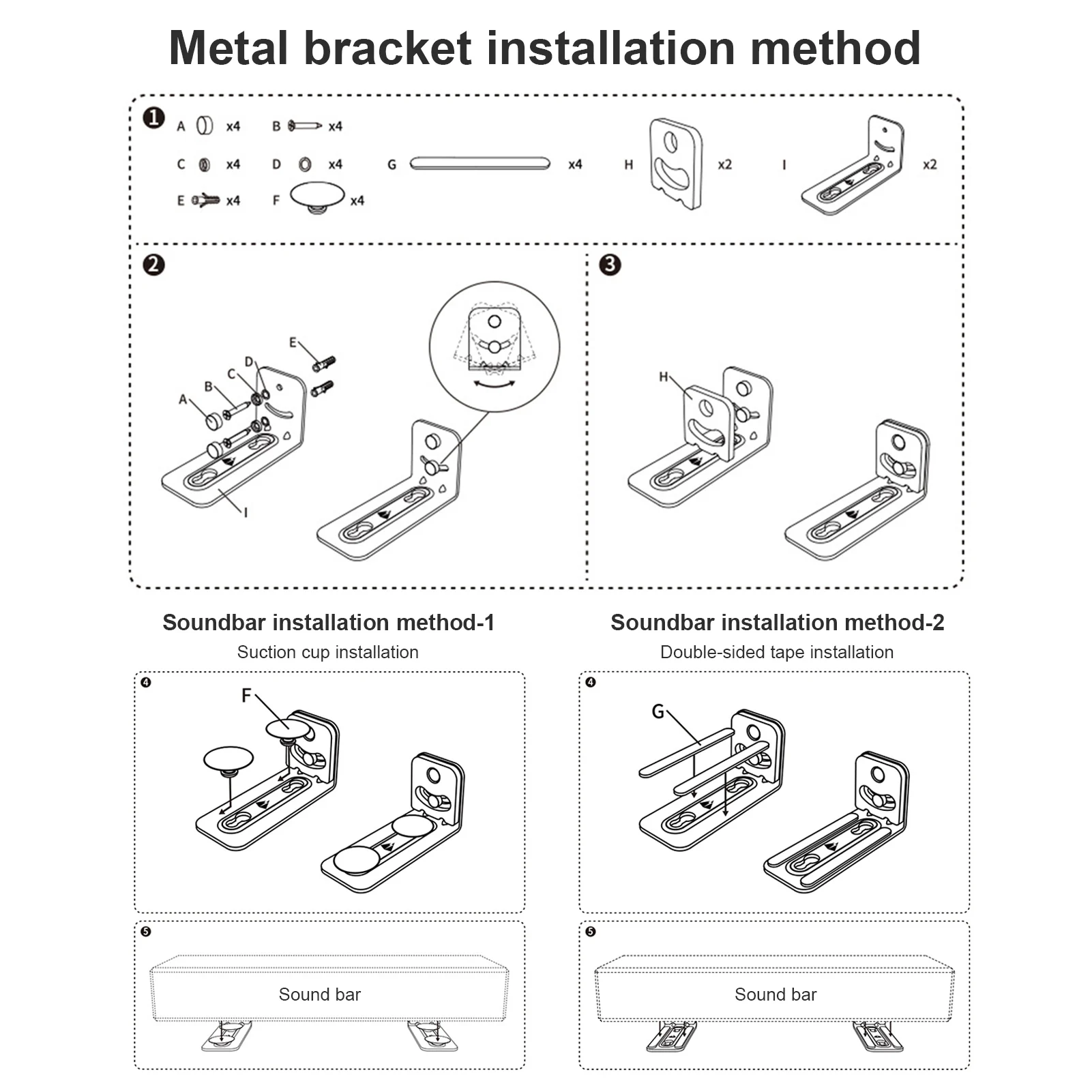 4. Нескользящая конструкция: кронштейн имеет присоски 4r и 4 двухсторонние ленты, чтобы крепко держать звуковую панель и держать звуковую панель от падения. Присоска может быть повторно использована, и двухсторонняя лента легко снимается без каких-либо царапин.