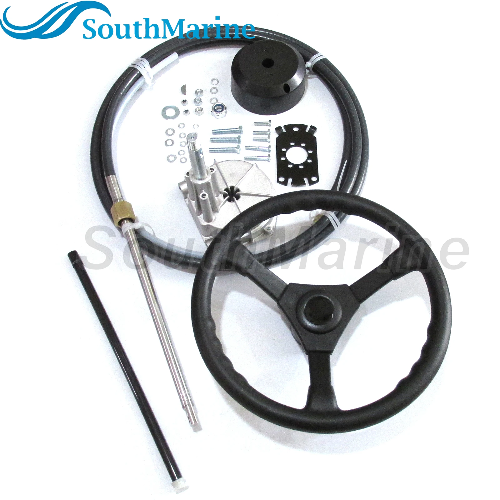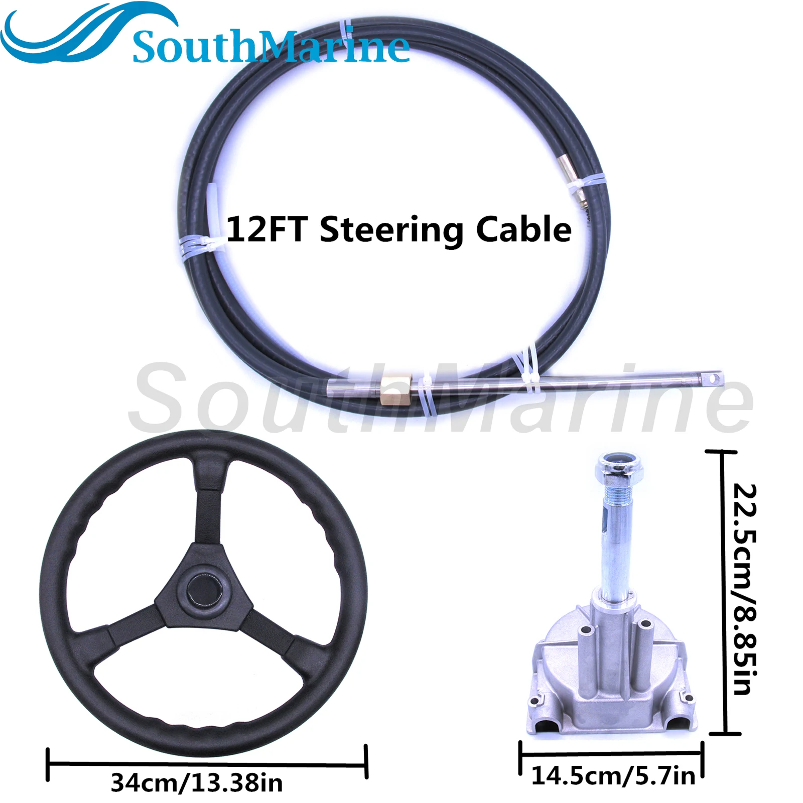 2、(COMPLETE ACCESSORIES)- It comes with a 13.5 inch steering wheel,Rotary Helm,Standard 3/4 inch tapered steering shaft;12FT Steering Cable, Hardware, 90 Degree Bezel Kit.