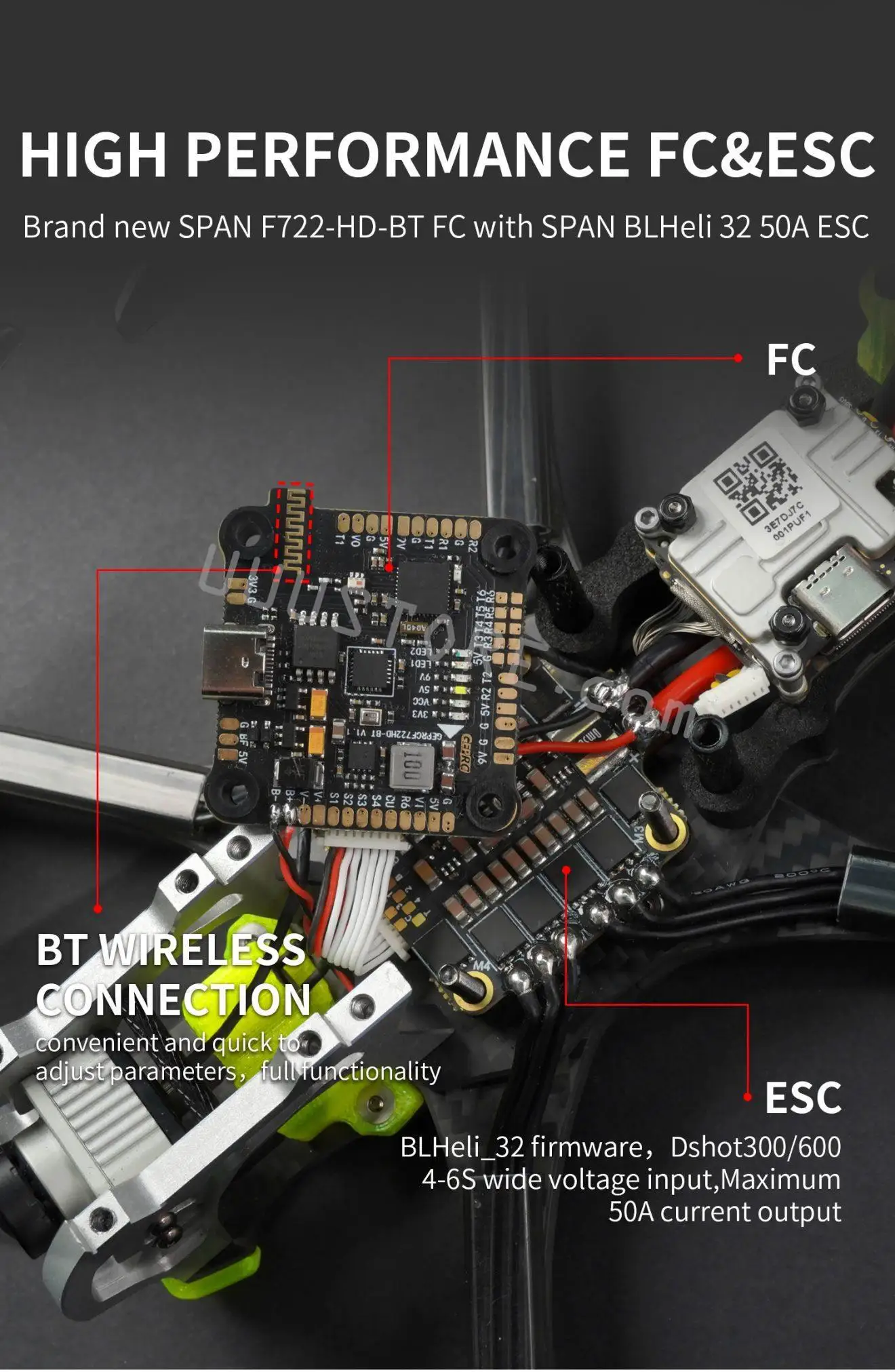 ESC: SPAN G50A BLHeli_32 4IN1 50A 4-6S ESC
