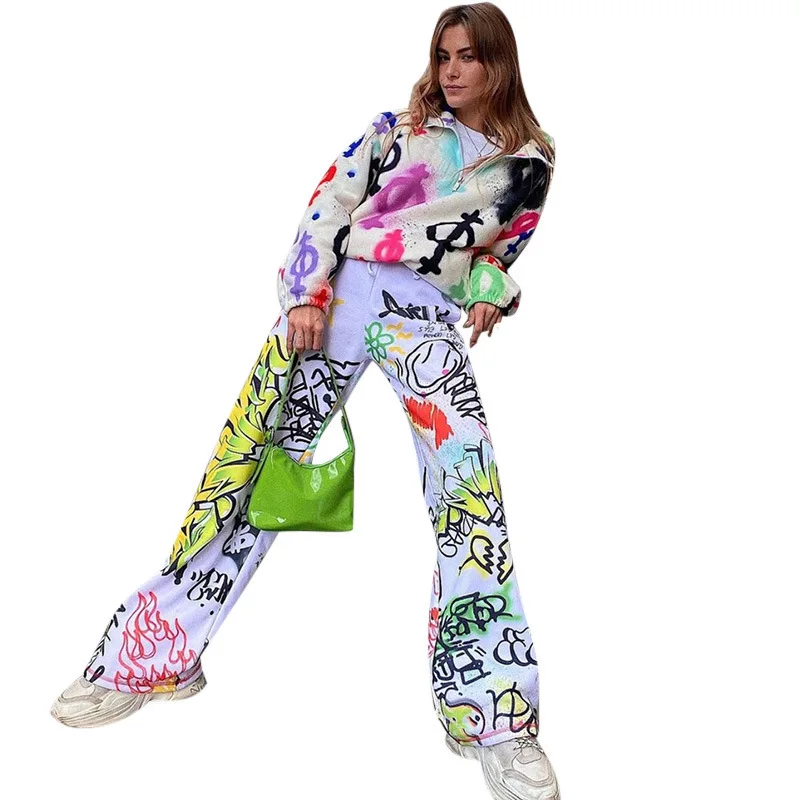 Отзывы о Y2K брюки в стиле аниме женские хиппи граффити принт шнурок спортивные уличная