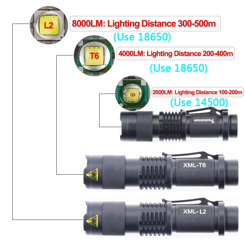 Отзывы о POCKETMAN мини-фонарик Q5/T6/L2 светодиодные фонарики карманного размера масштабируемый