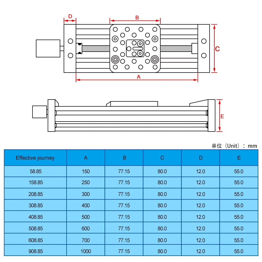 Трапециевидный винт:Диаметр 8 мм, шаг 2 мм, свинец 8 мм