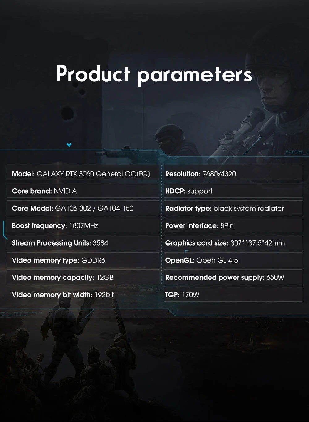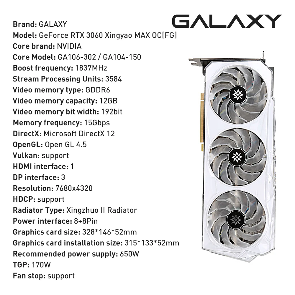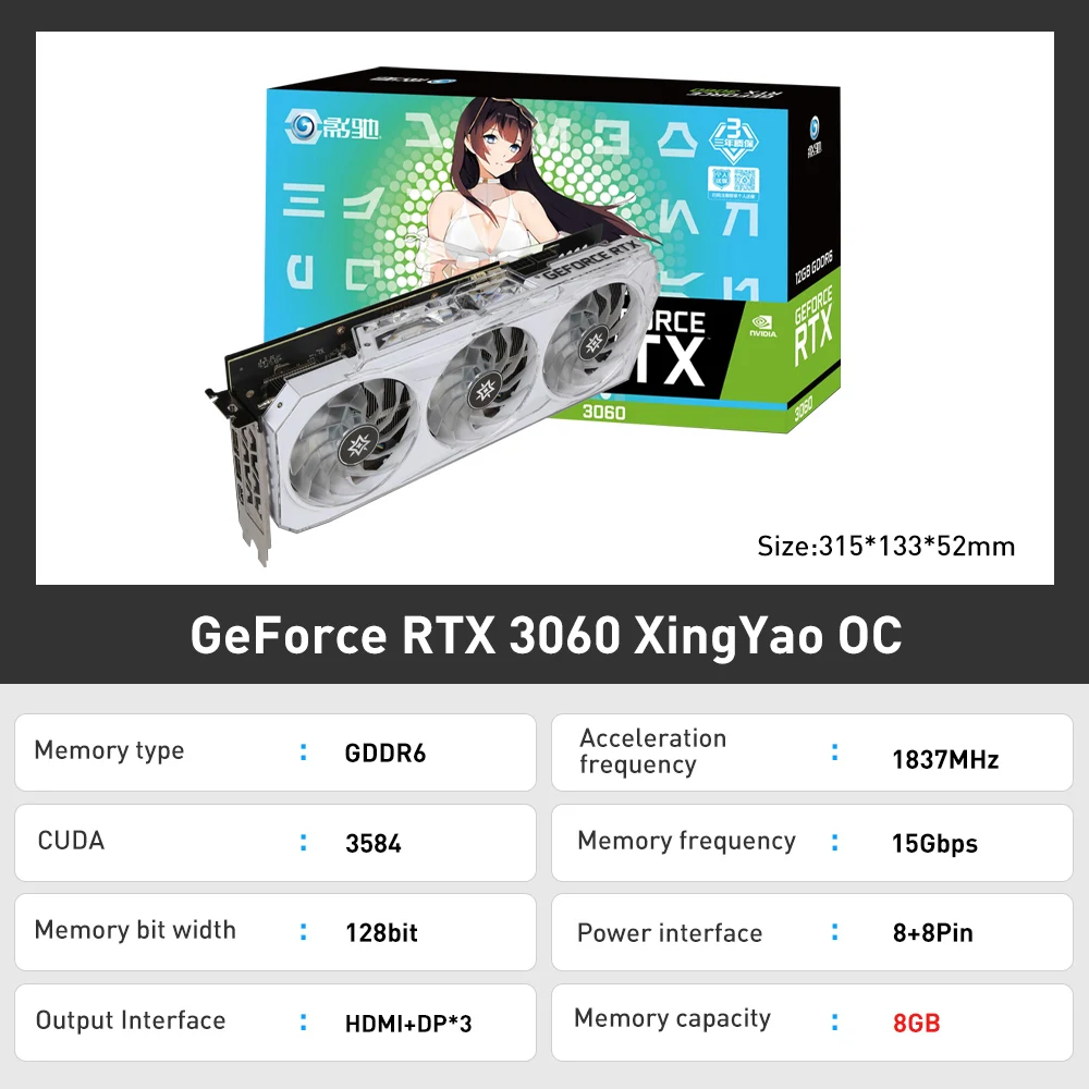 Отзывы о Новая графическая карта GALAXY GDDR6 rtx 3060 3060Ti 8 Гб 12 игровая видеокарта GPU 8Pin 192 256 бит