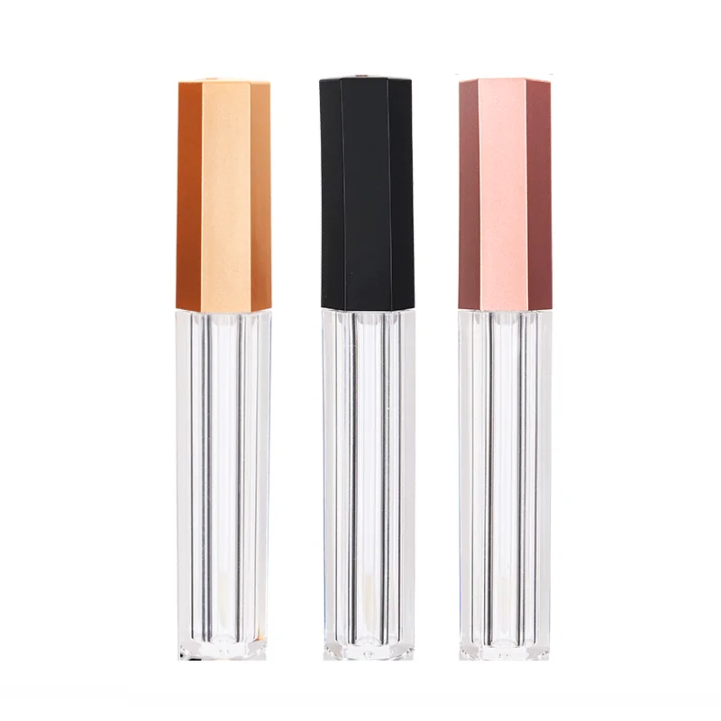 Шестиугольная круглая Прозрачная глазурь для губ пустая трубка розовая Золотая черная Золотая крышка 4 мл портативная косметическая упаковка пластиковый контейнер для блеск для губ