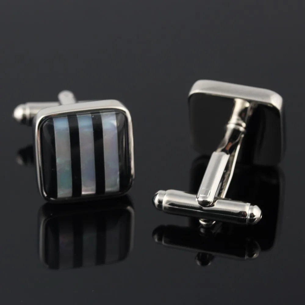 1. Запонки в полоску с зеброй, квадратным серебристым покрытием черного оникса.