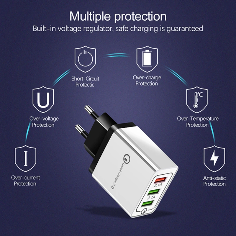 Отзывы о Быстрое зарядное устройство с 3 портами QC3.0 USB-зарядное для телефона быстрая