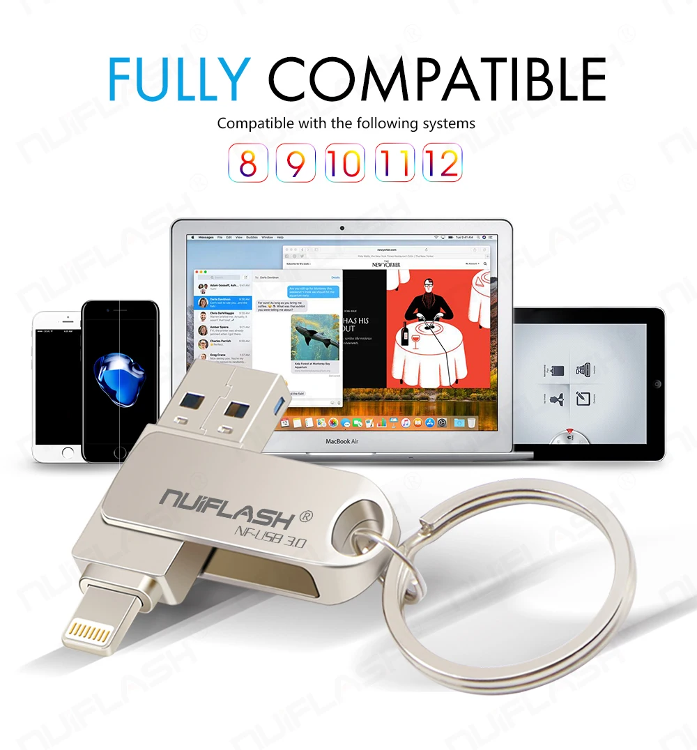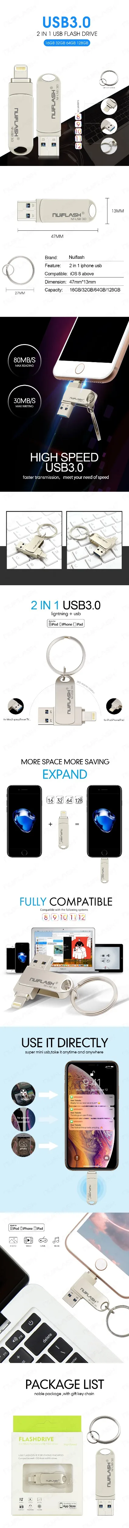 Отзывы о Флеш-накопитель USB 3 0 для iPhone Xs Max X 8 7 6 iPad 128 ГБ 256 512 карта памяти USB-ключ