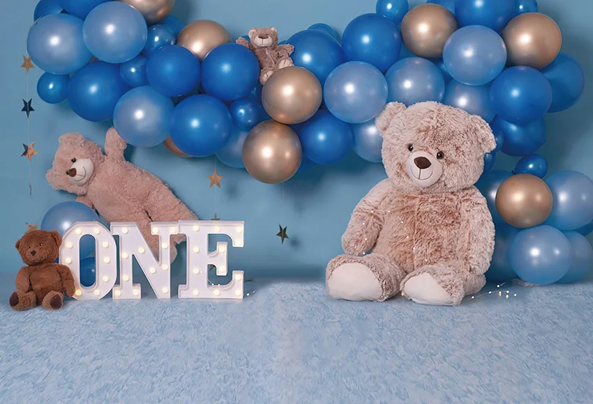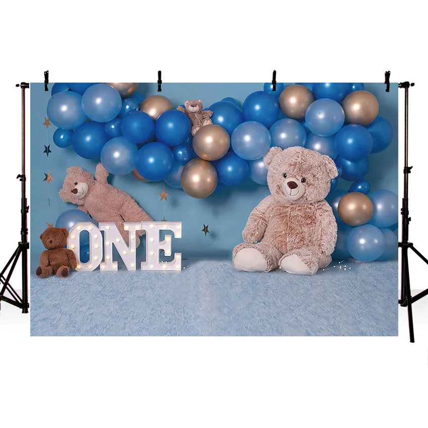 Отзывы о Фон для фотосъемки Mehofond синие воздушные шары Игрушка коричневый медведь мальчик