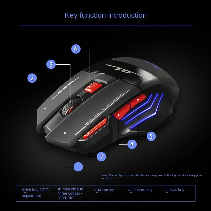 ● Common4filesDPI, 1000DPIThe красный светильник мигает на роликах 1 раз, 1600DPIFlash2Times,2400DPIFlash3Times,4000DPIFlash4Times.