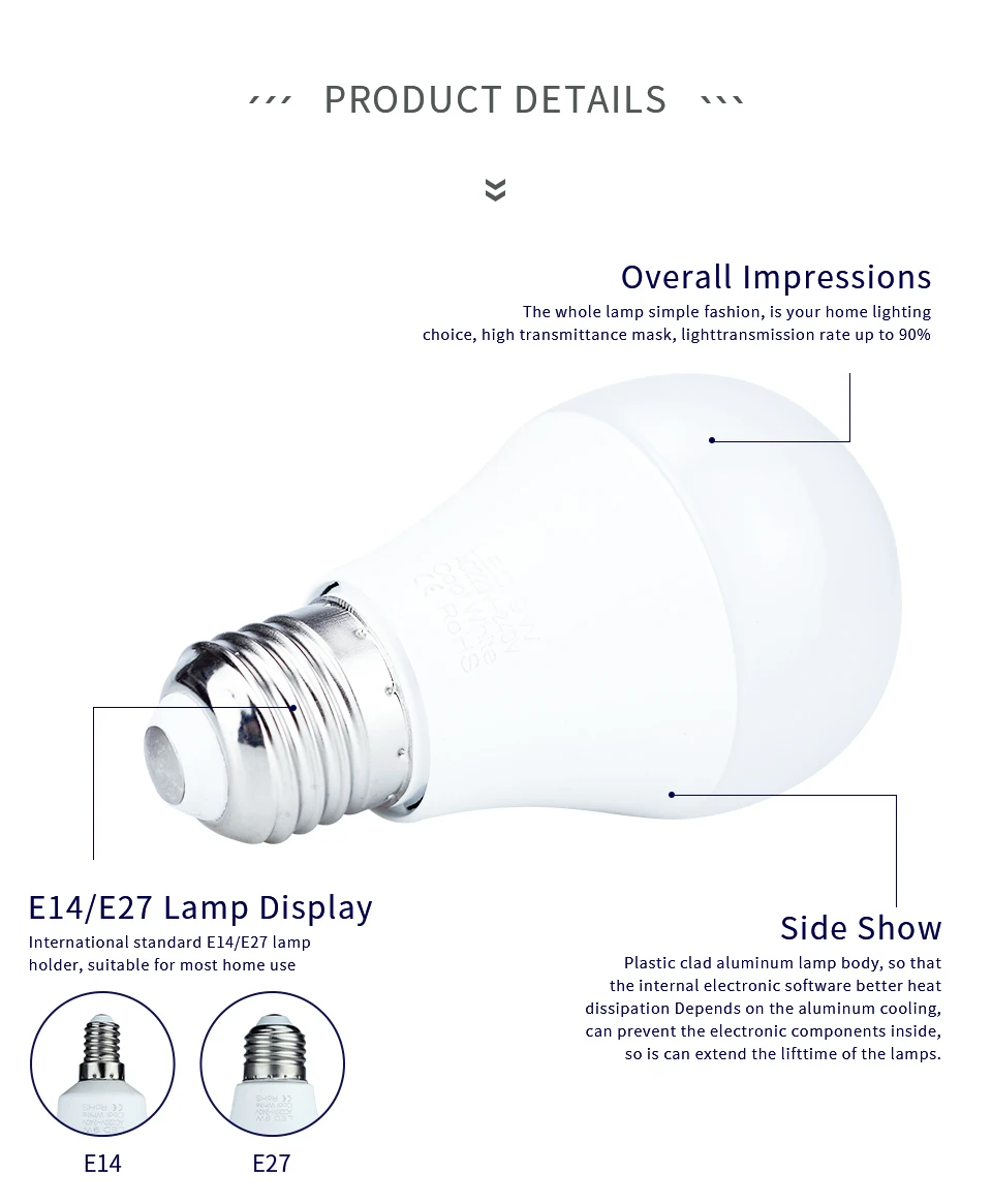 E27-3W/ 6 Вт/7 Вт/9 Вт/12 Вт/15 Вт/18 Вт/20 Вт