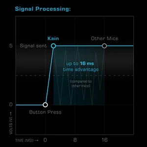 Клик с регистраторами Kain до 16[JA1] [SW2] ms быстрее, чем остальные, благодаря улучшенной механике переключателя и интеллектуальному алгоритму прошивки.