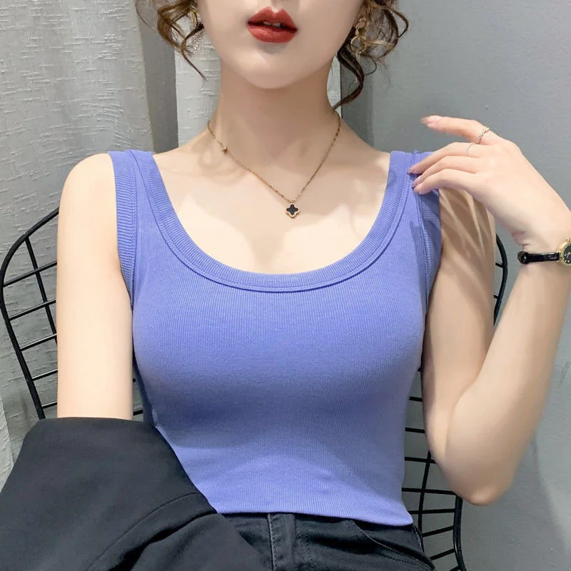 Отзывы о Женский хлопковый эластичный облегающий жилет футболка без рукавов с круглым