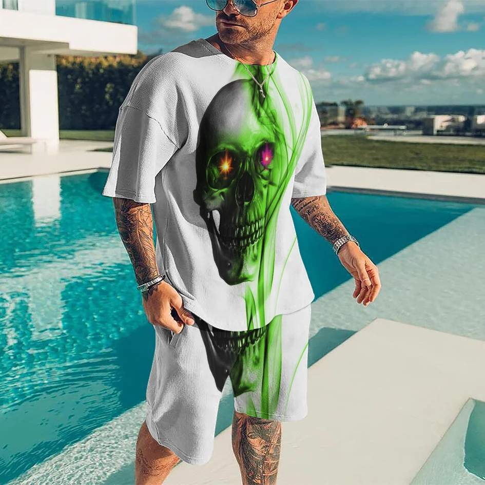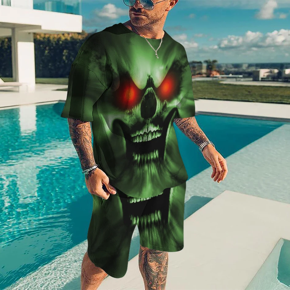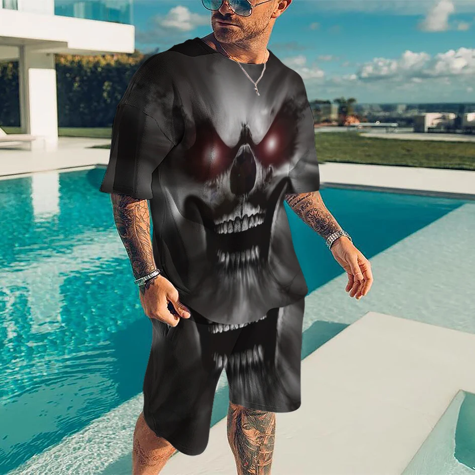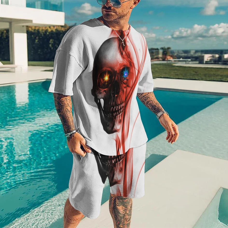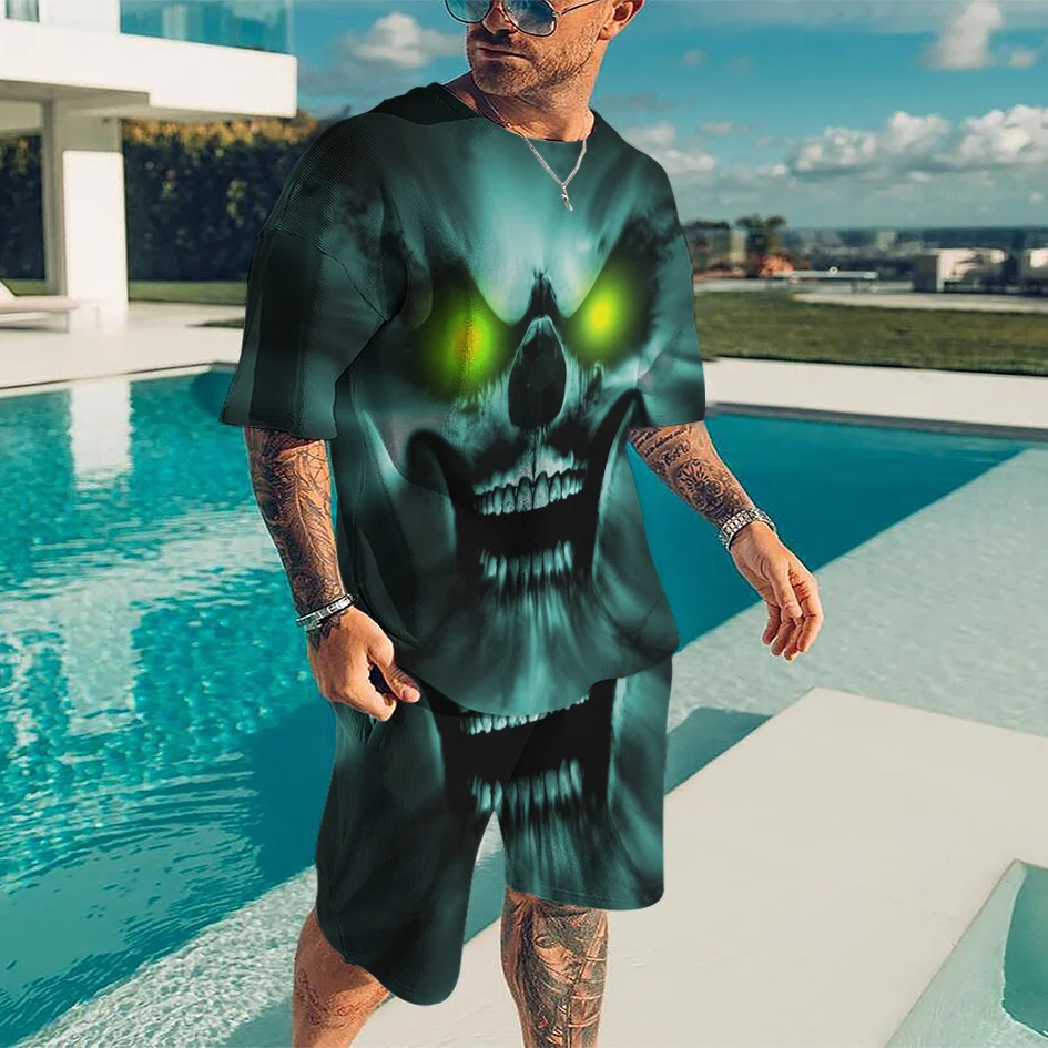 Отзывы о Новинка 2022 футболка с черепом и шорты в стиле ужасов 3D креативный принт трендовая