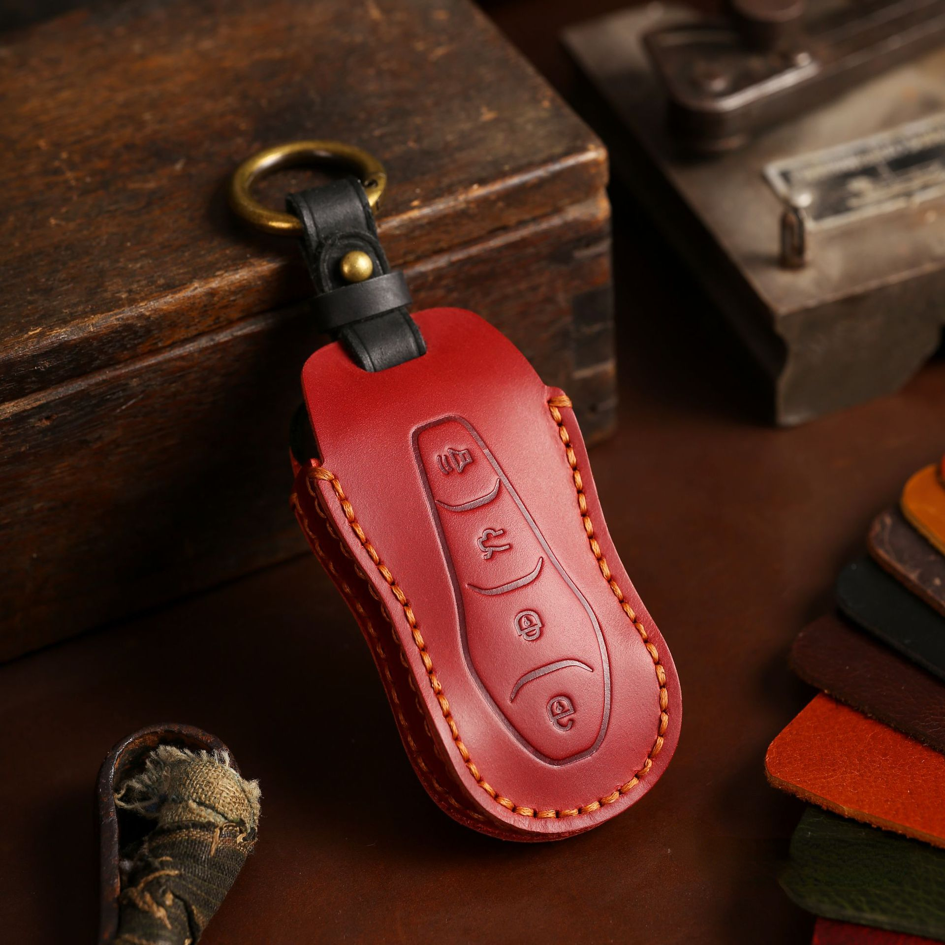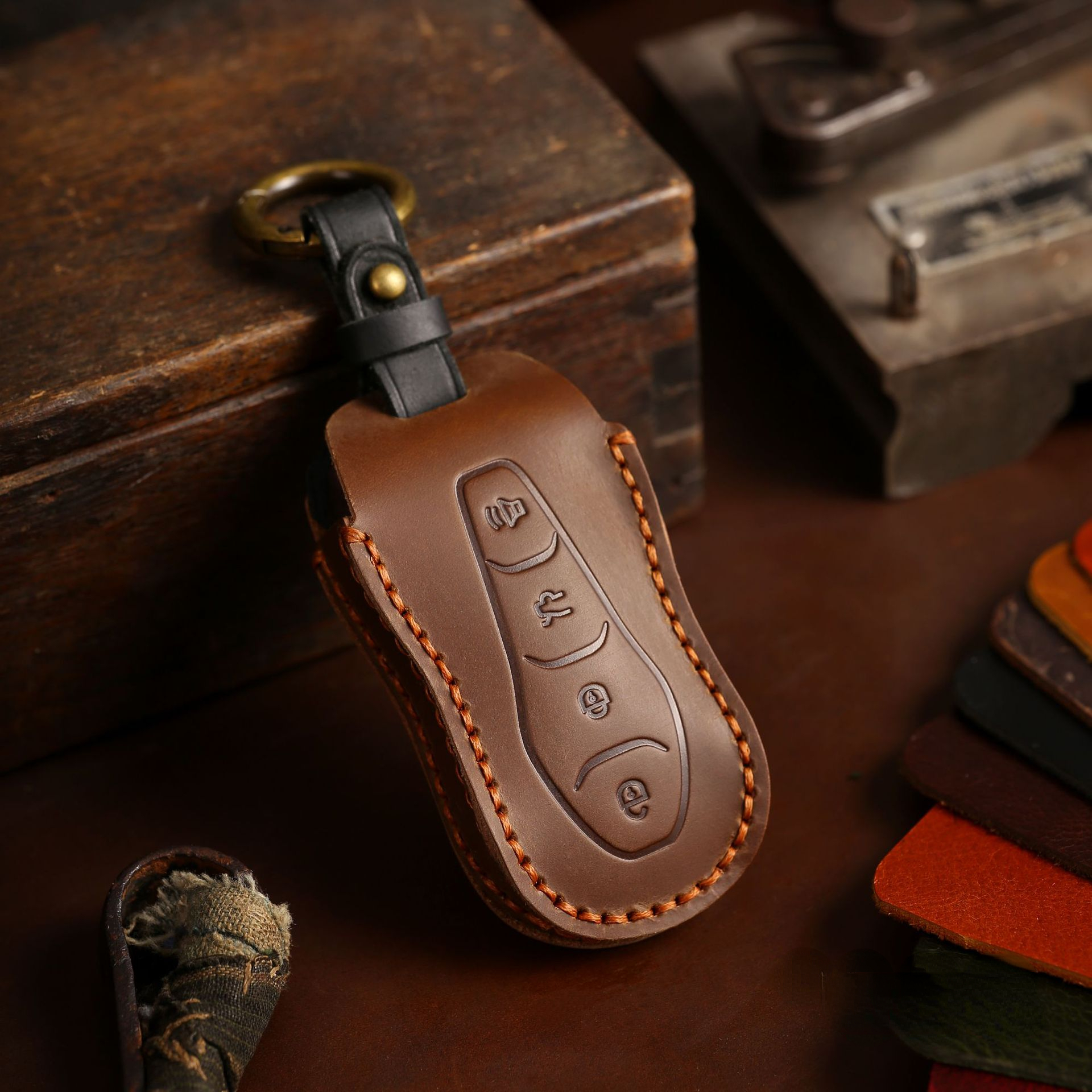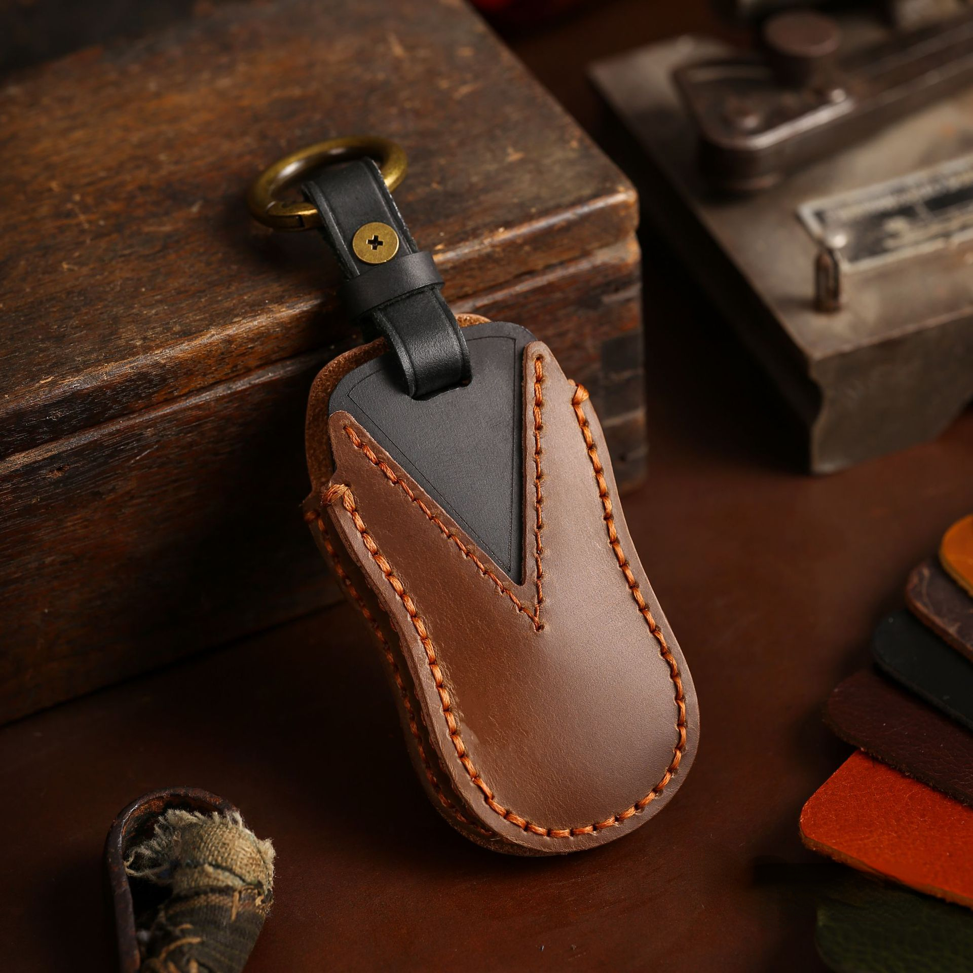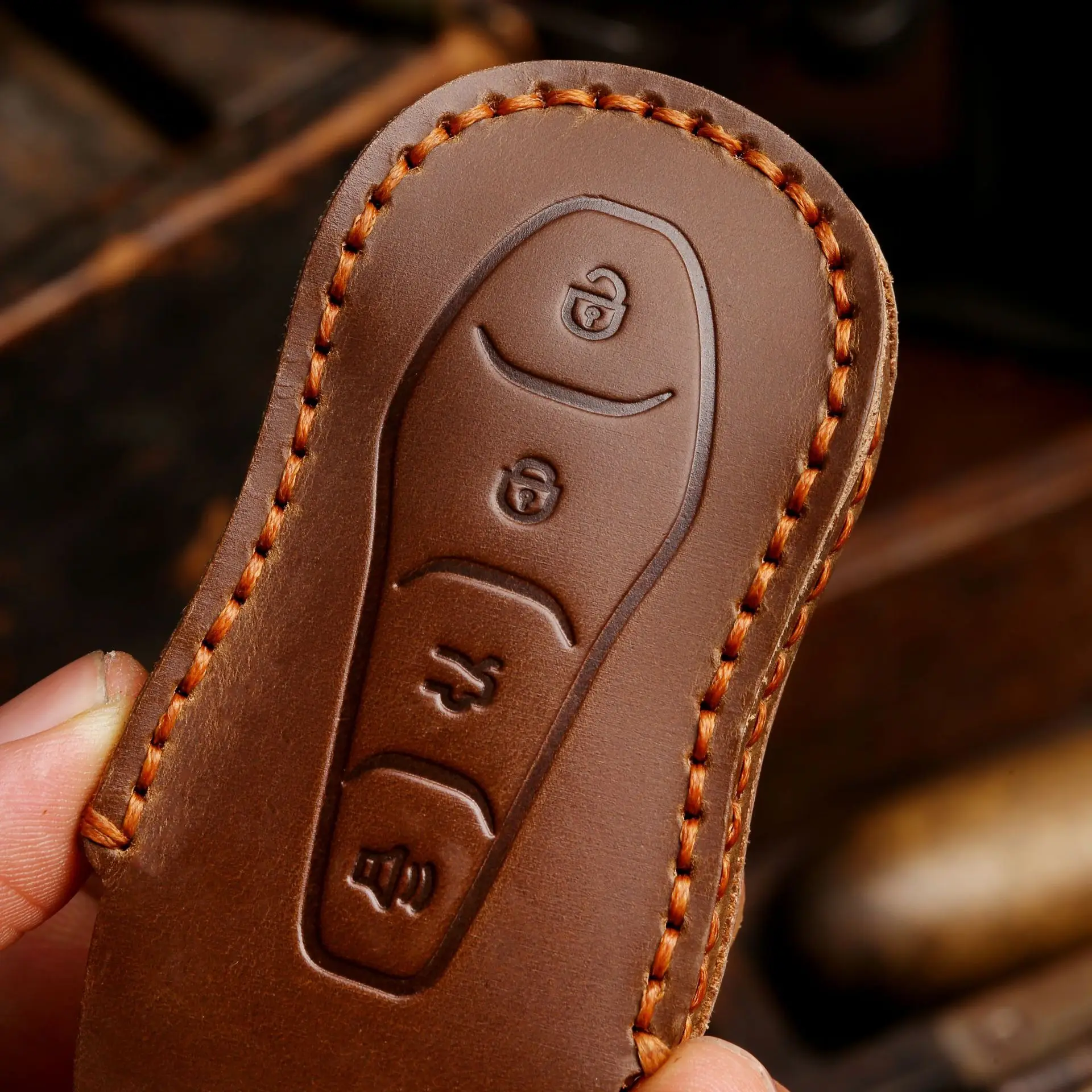 {Материал}: Чехол для ключей из натуральной воловьей кожи (другое название: кожа Crazy-Horse), ручная работа, тонкая работа.