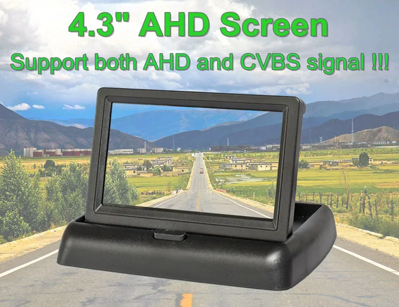 1. 4,3 "светодиодный цветной AHD ЖК-монитор с камерой заднего вида. Полноцветный светодиодный дисплей с подсветкой.2. Легко установить. (Легко подключить версию питания на автомобильном зарядном устройстве) Нужно только подключить к обратной лампе.3. Низкое энергопотребление. Нет аудиовхода или выхода.4. Поддержка AHD и CVBS сигнала.