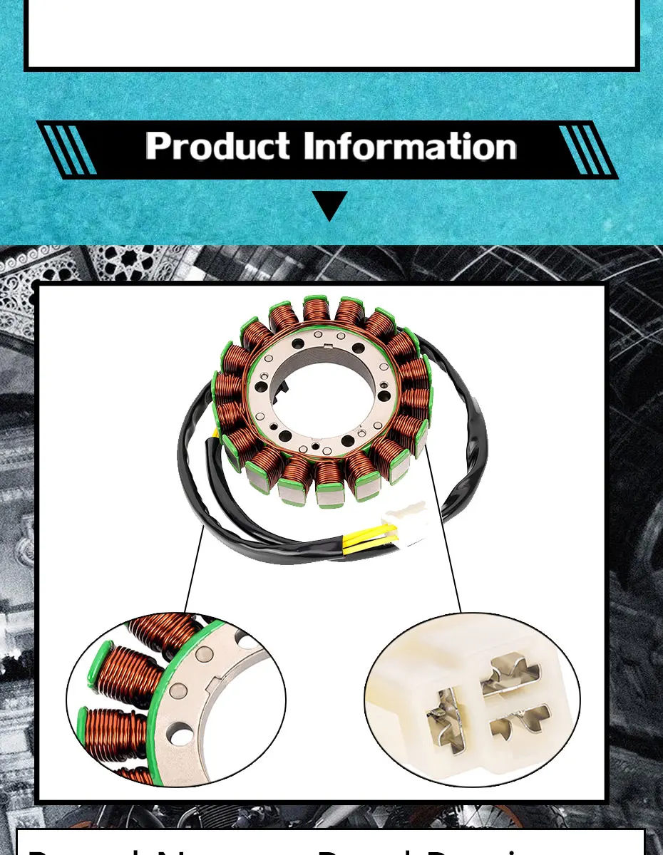 · Название бренда:ROadПAssion · Название типа:Запчасти для мотоцикла генератор воспламенитель/статор Катушки Comp · Материал:Медь · Состояние:100% Новый бренд · Количество:Цельнокроеное платье · Код OEM:26440171A, 26420172A