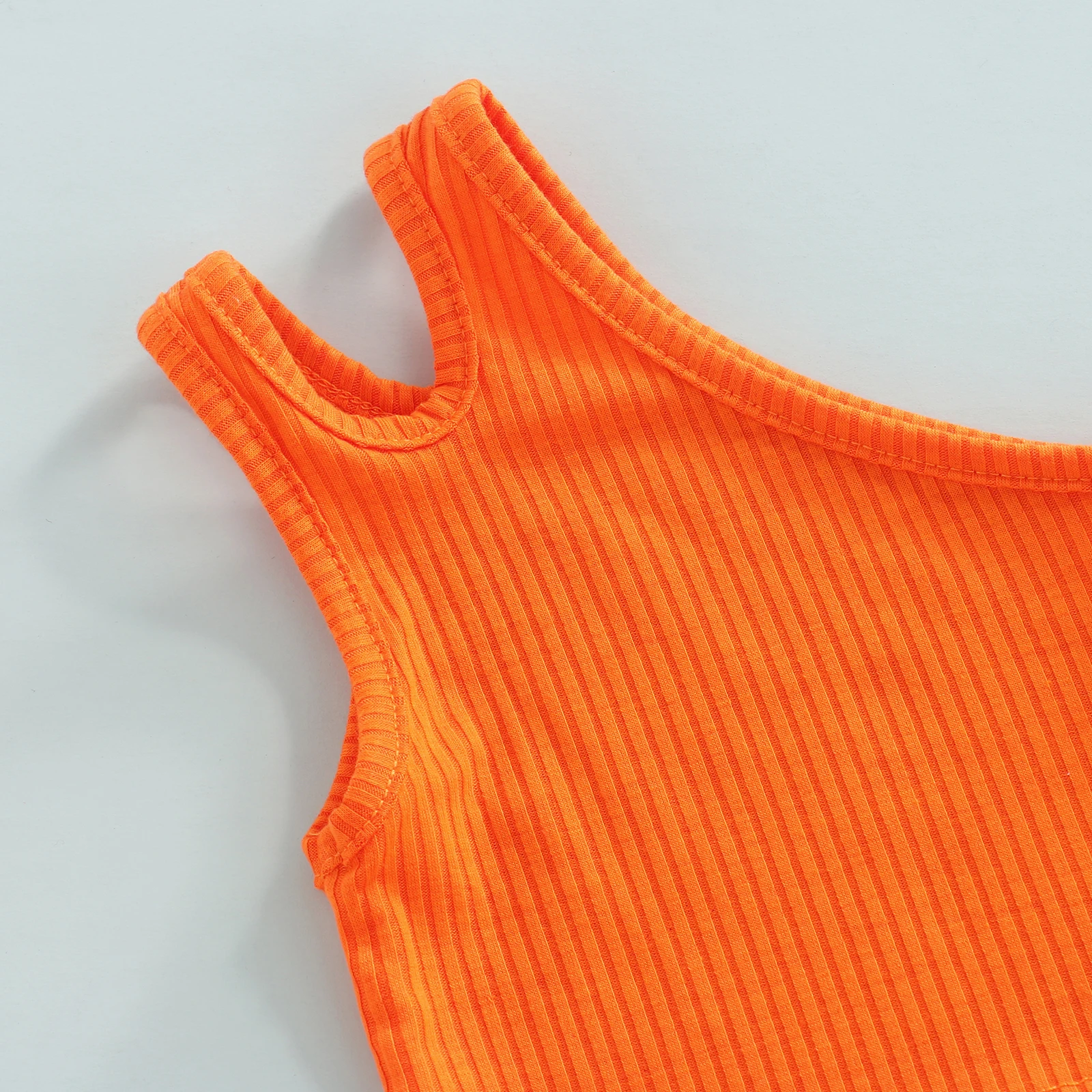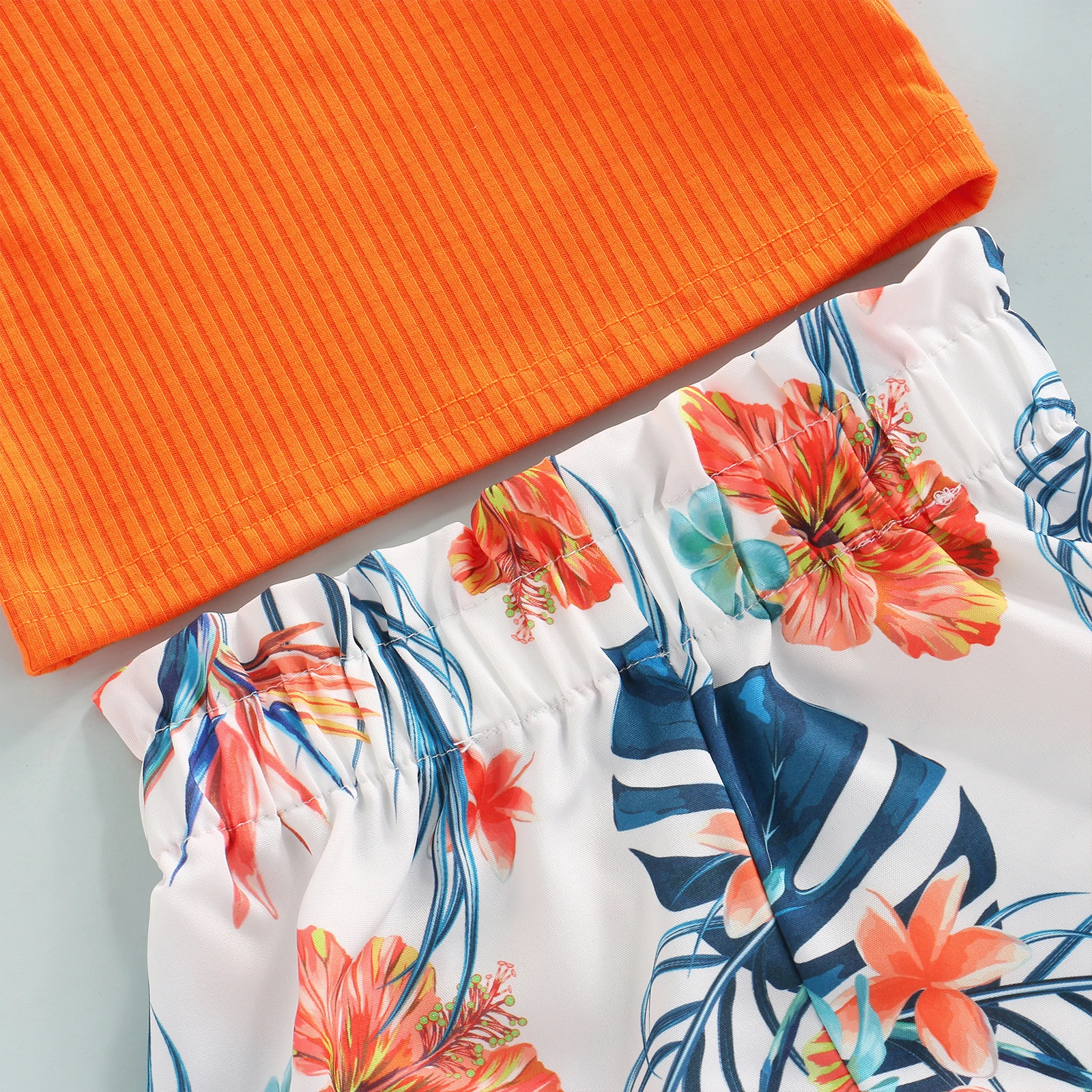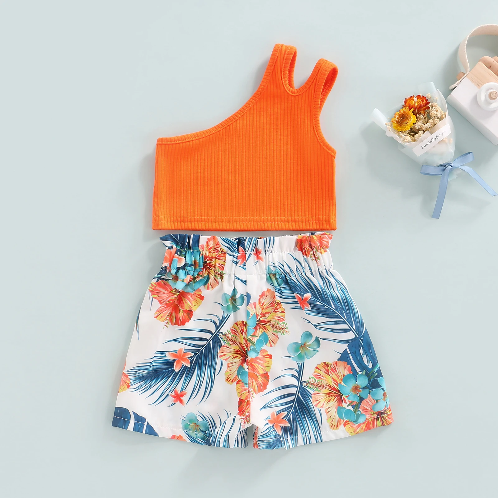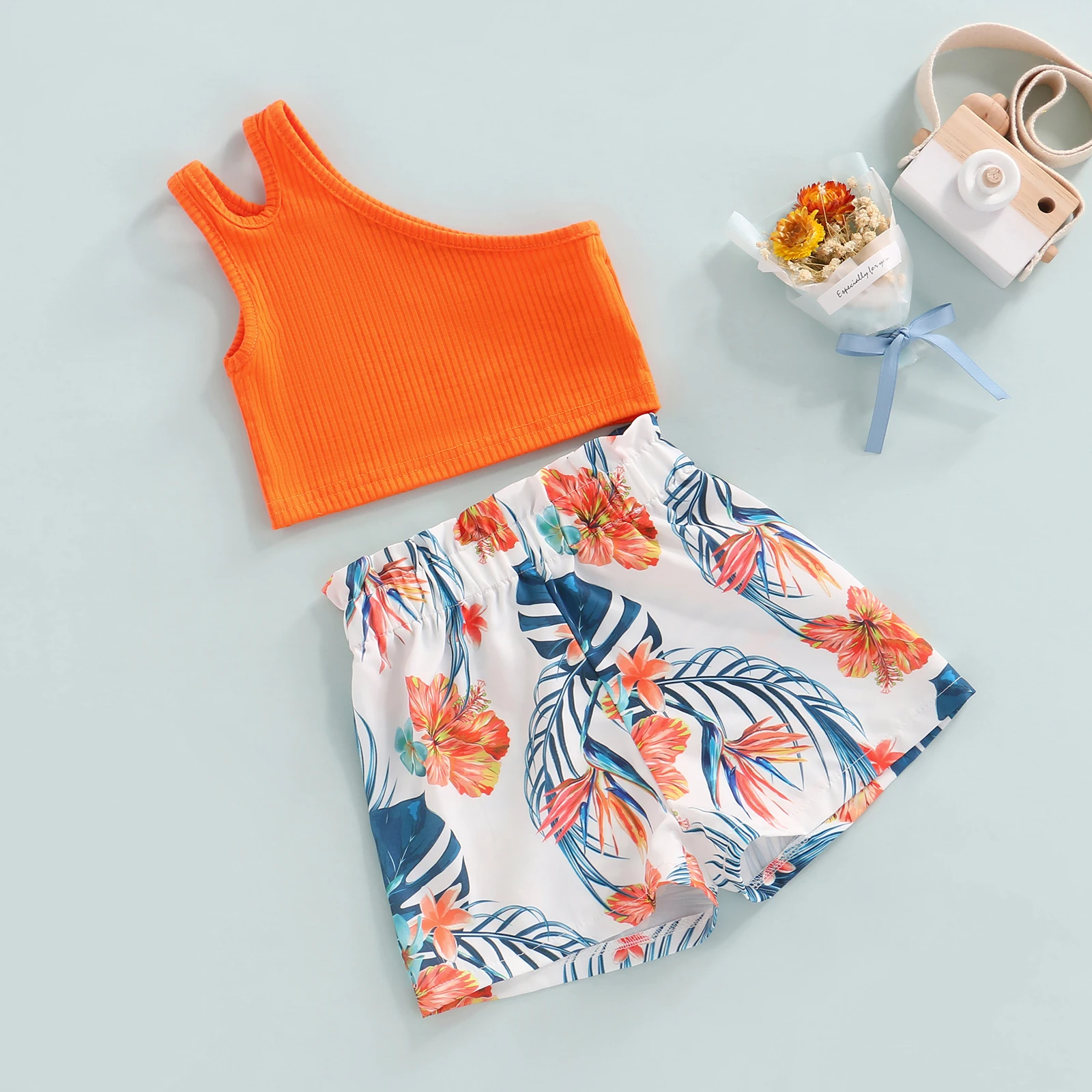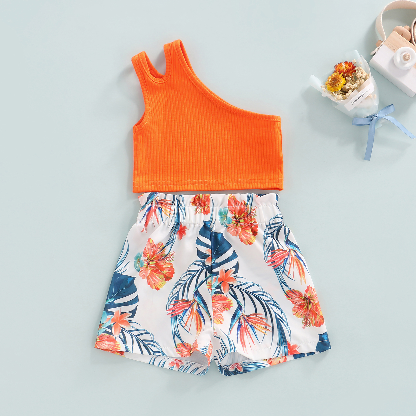 Отзывы о 2 шт. Детские однотонные майки на одно плечо с вырезами шорты цветочным и листовым