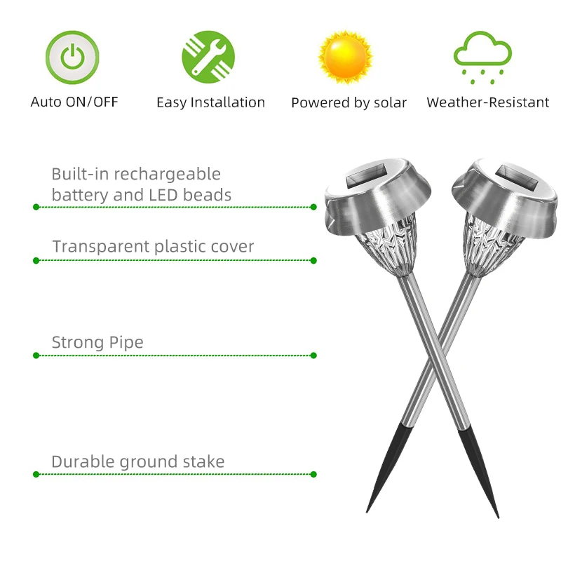 1. Простота установки: одна минута для сборки деталей (Включите кнопку перед сборкой) и одна минута для вставки их в землю, затем он может работать в вашем саду, на крыльце или во дворе. Никаких инструментов и проводов не требуется.