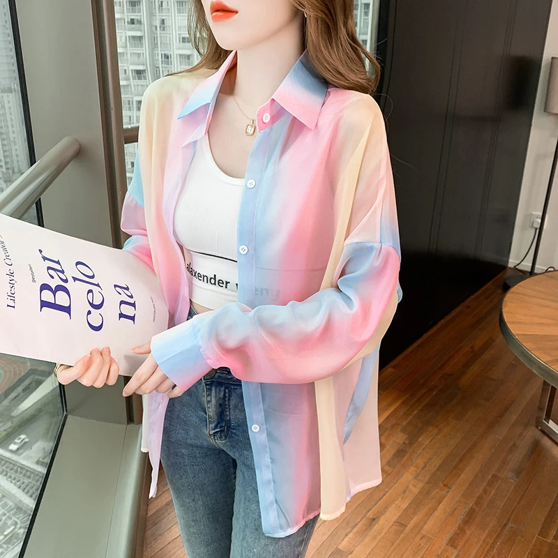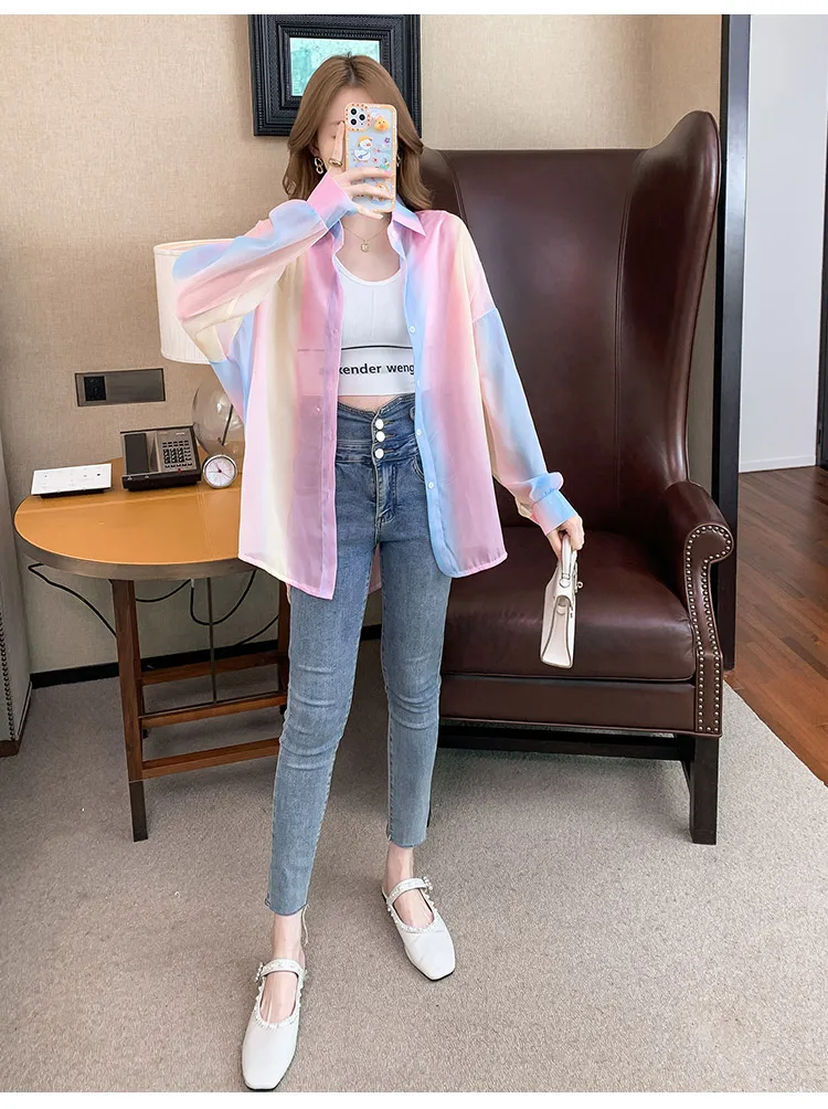 Отзывы о Женская свободная рубашка-Джокер с длинным рукавом радужсветильник светом -