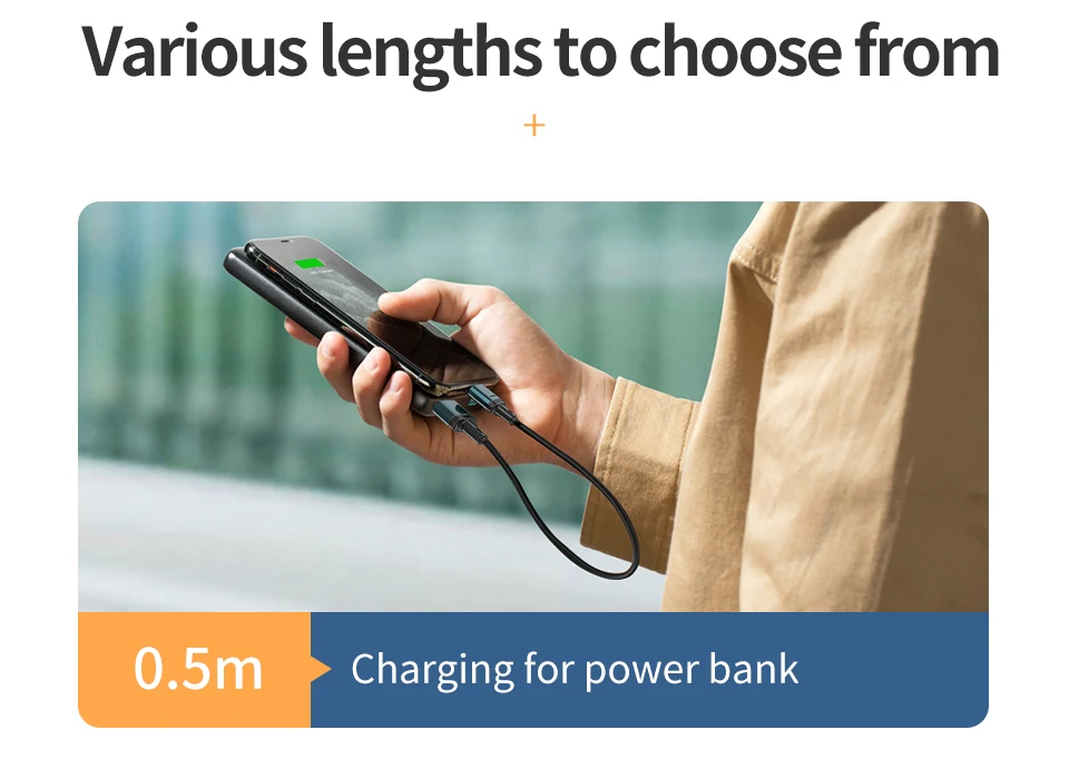 2 м/3 м: длинный кабель обеспечивает свободную зарядку