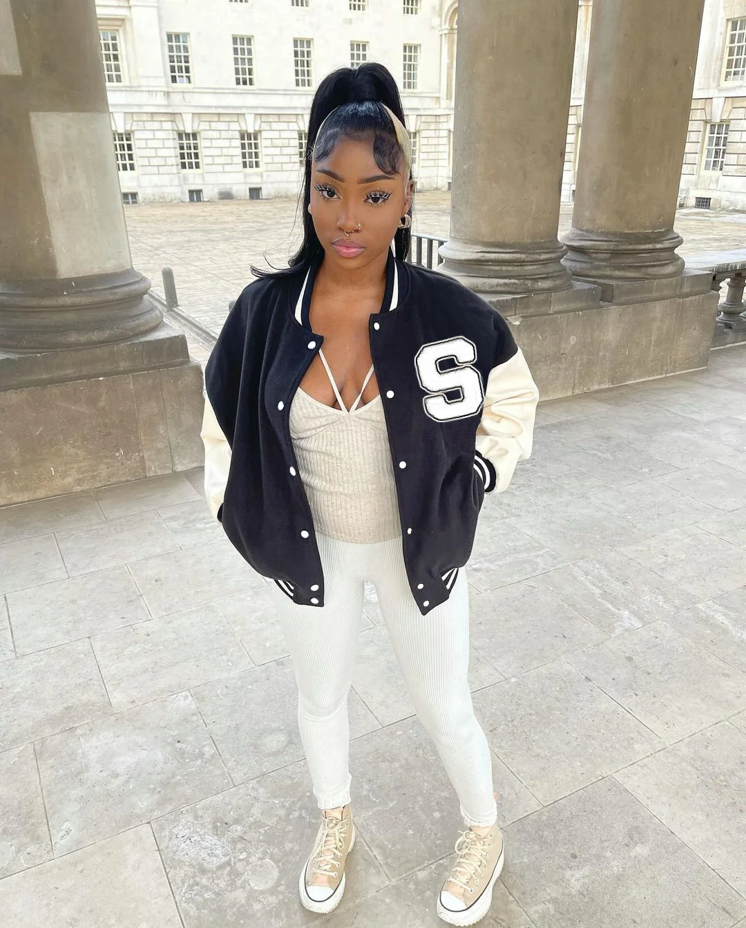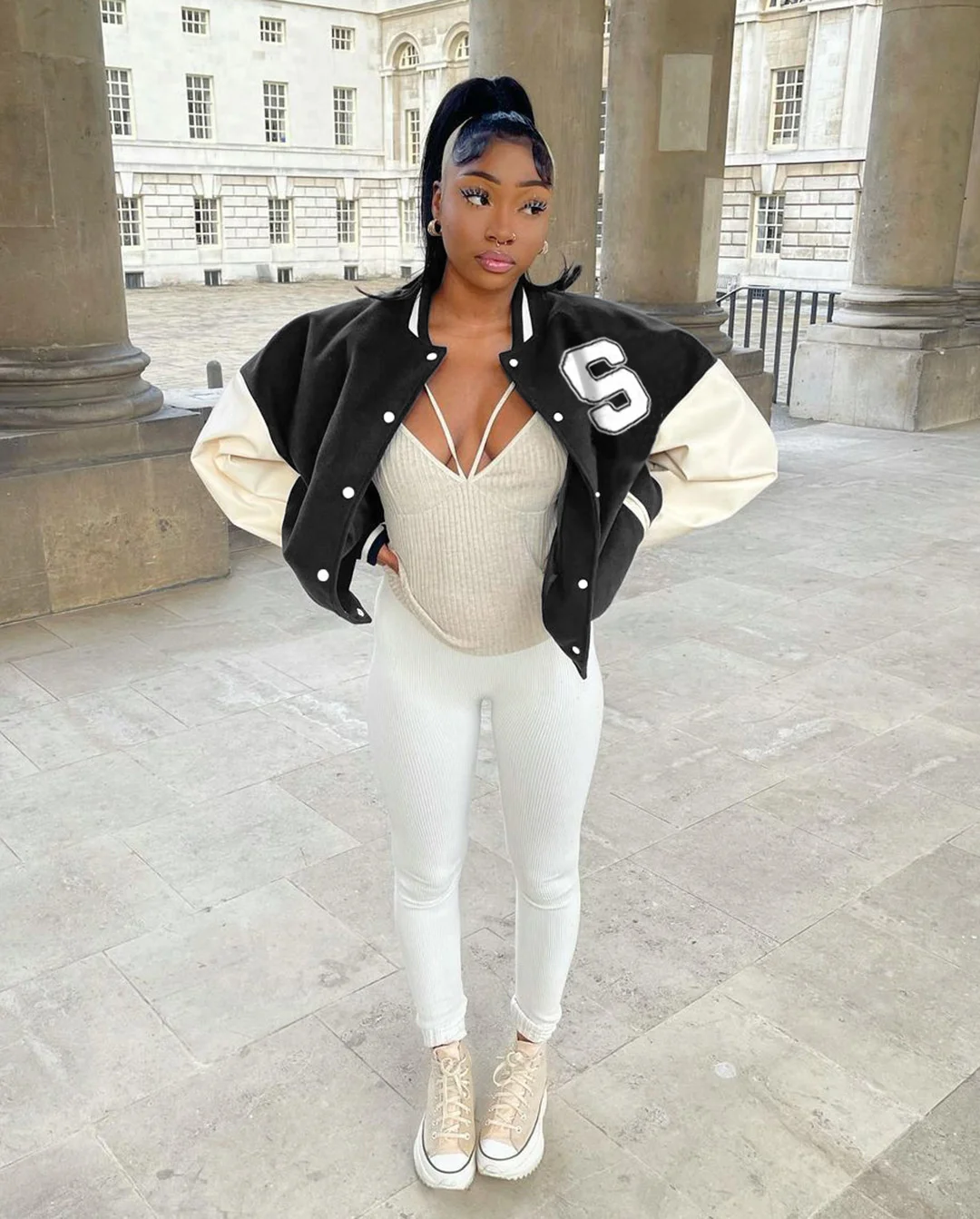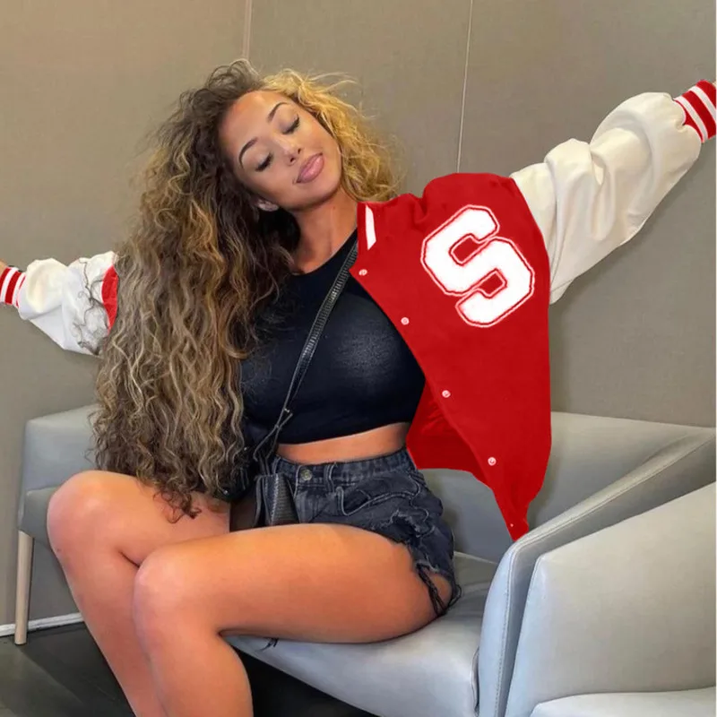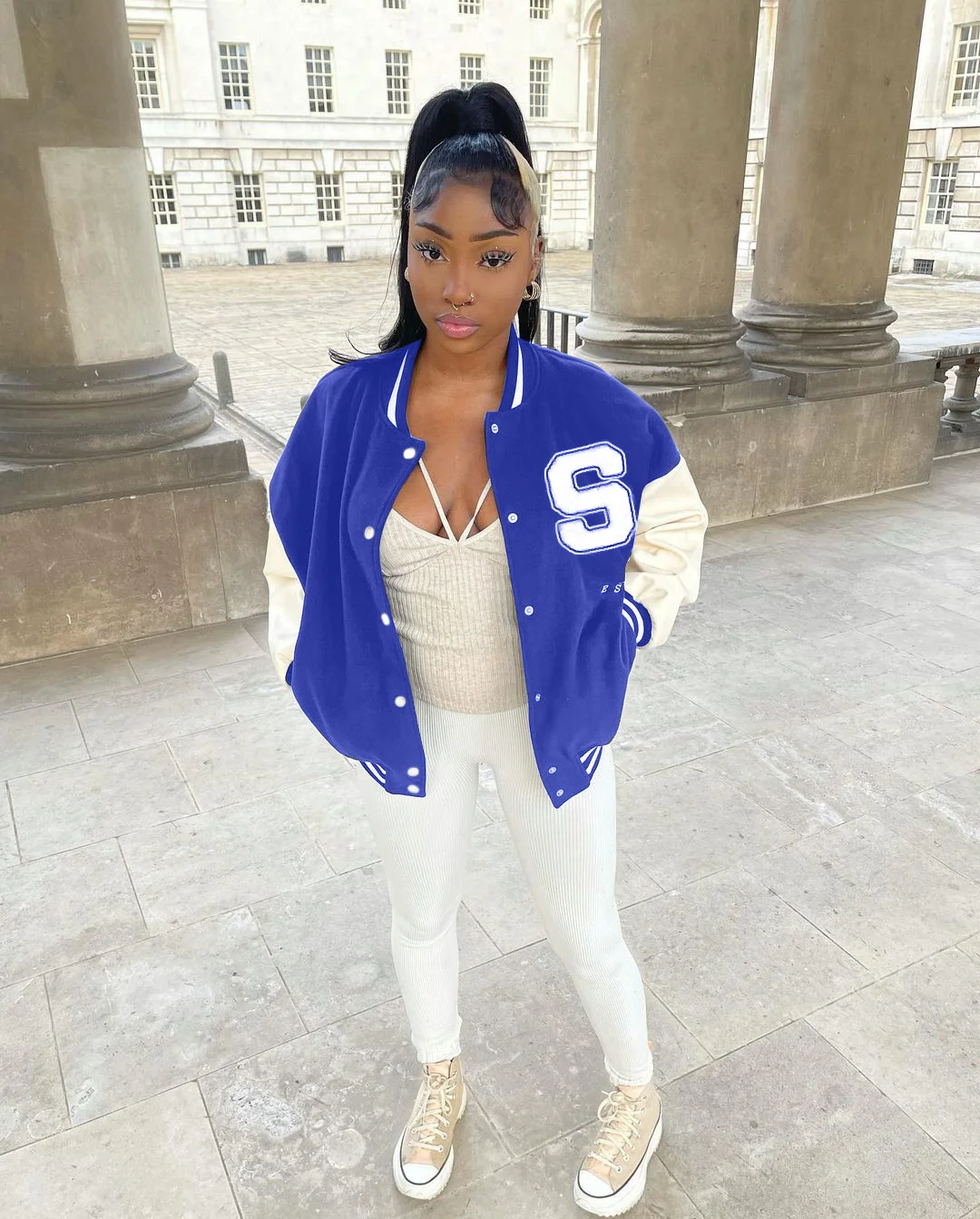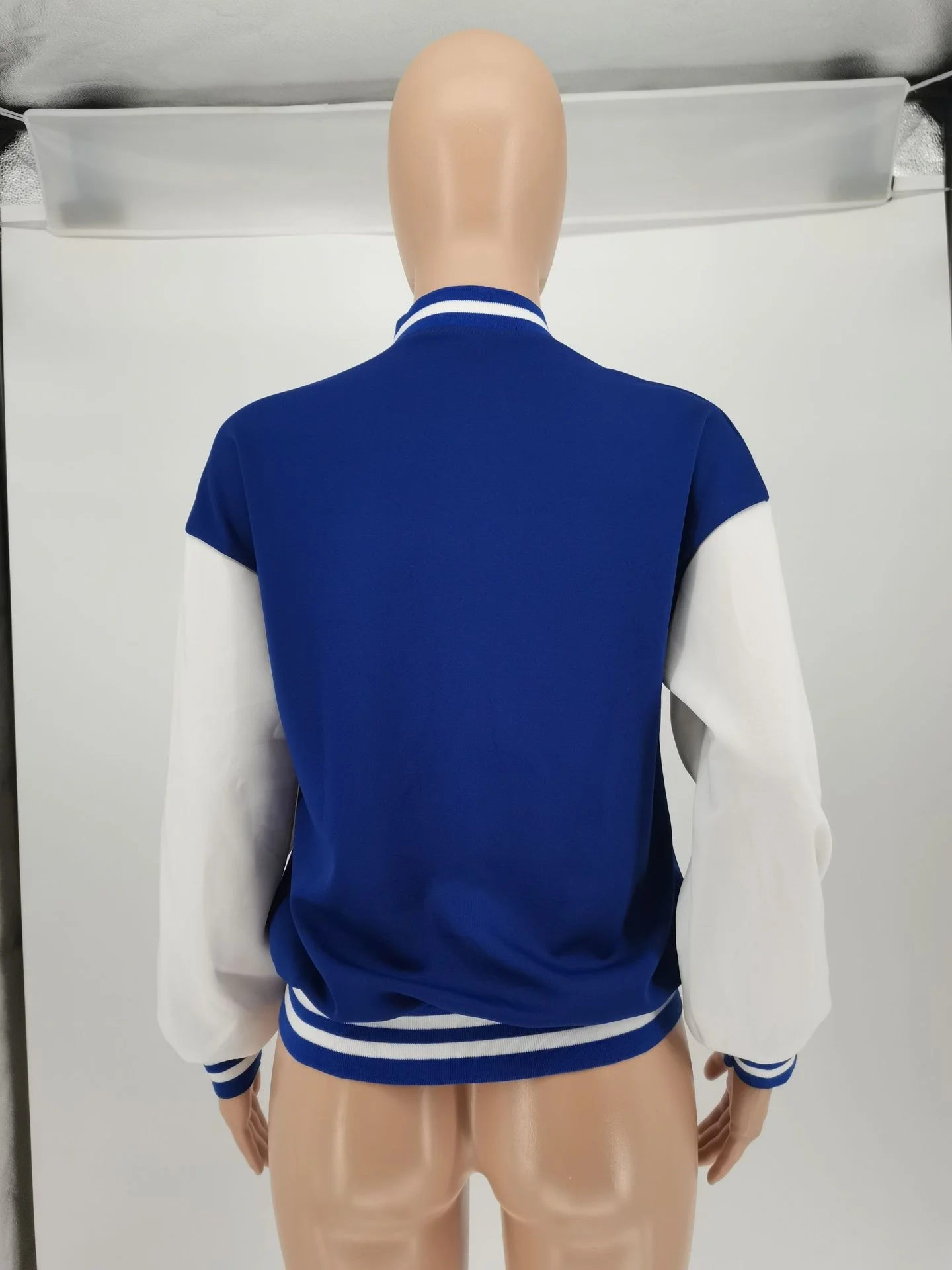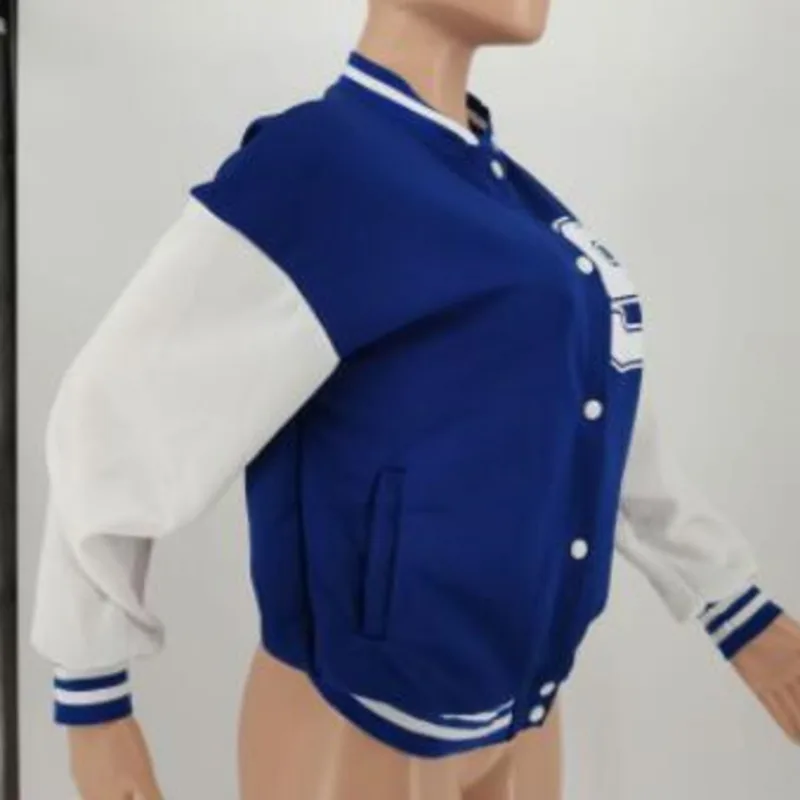 Отзывы о Женская куртка-бомбер YICIYA синяя бейсбольная куртка-майка в рубчик с надписью